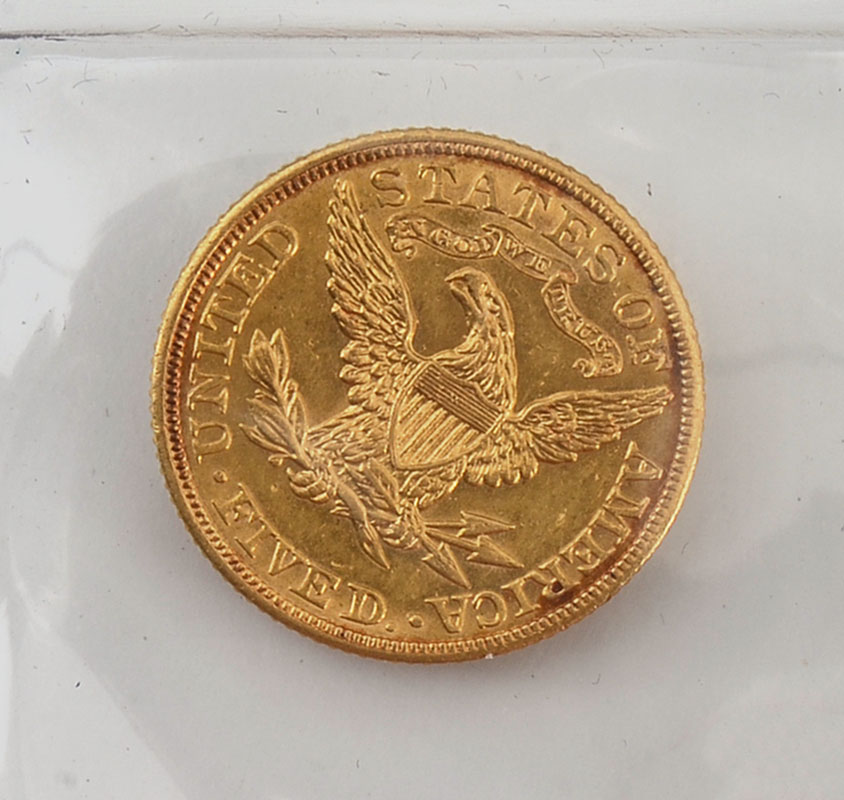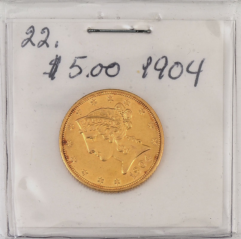 1904 US GOLD $5 LIBERTY HEAD COIN: Ungraded 1904 gold half eagle, approx. 8.3 grams.