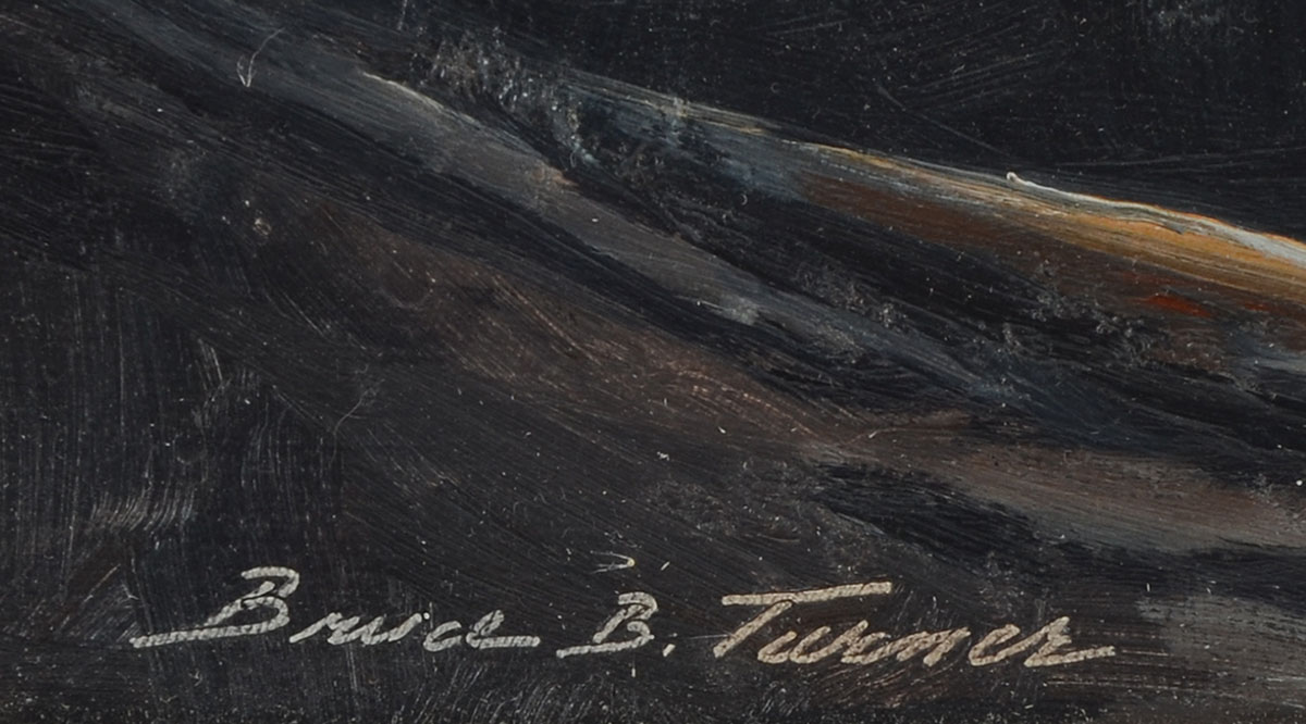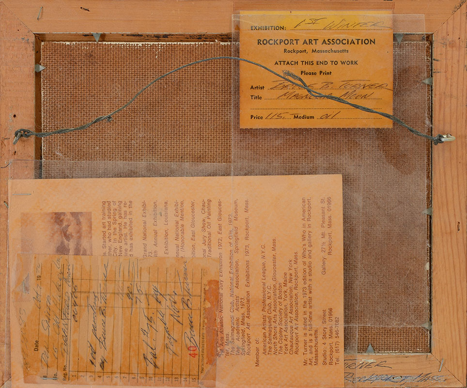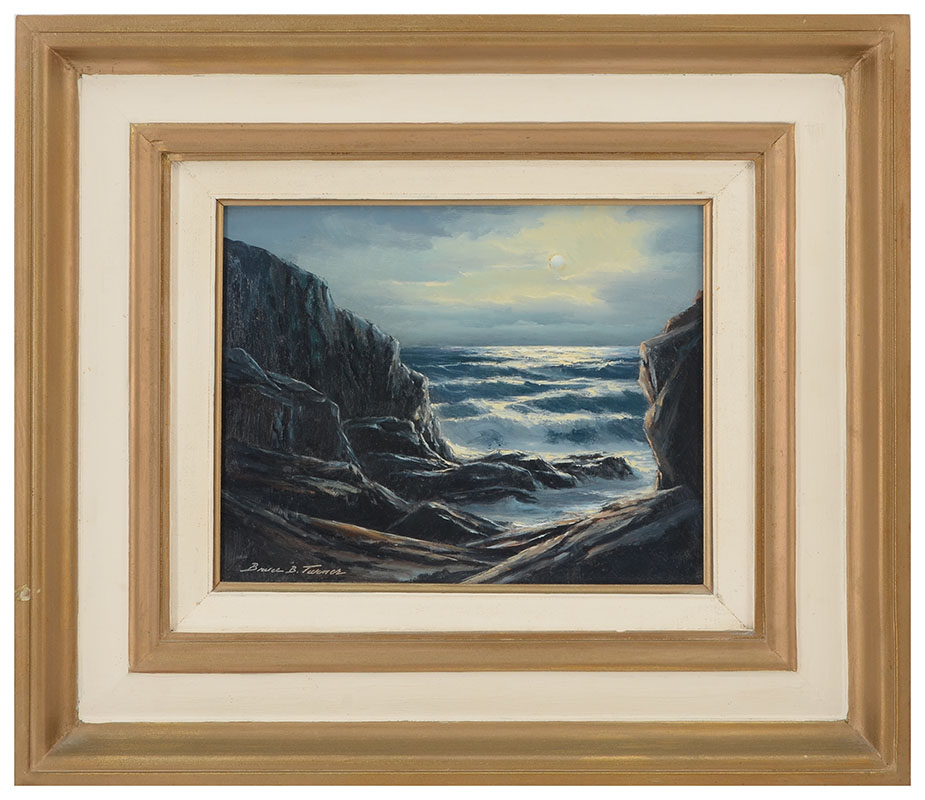 TURNER, Bruce, (English, 1894-1963): ''Magnolia Moon'', Oil on Masonite, 8'' x 10'', signed lower left, Rockport Art Association exhibition label affixed verso with original receipt, framed, 15.25'' x 17.25''.
