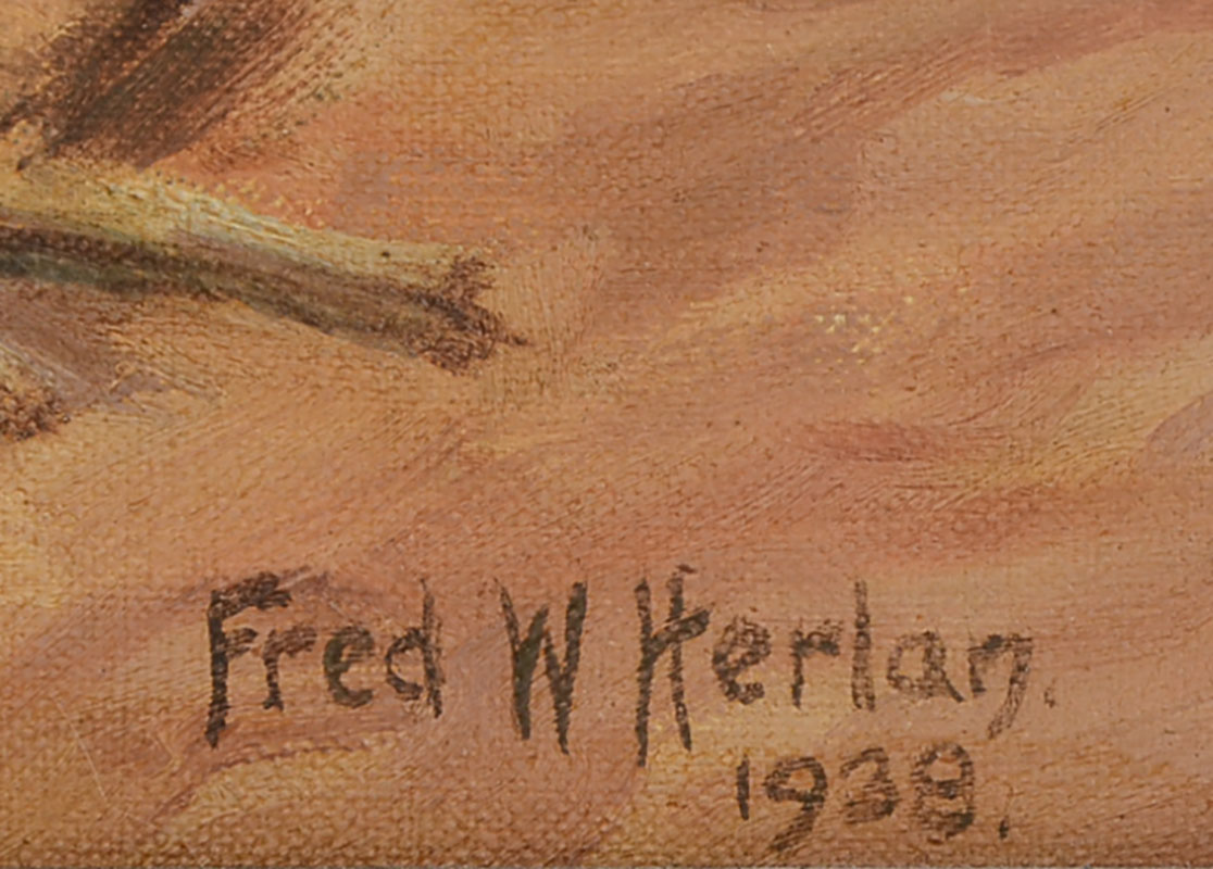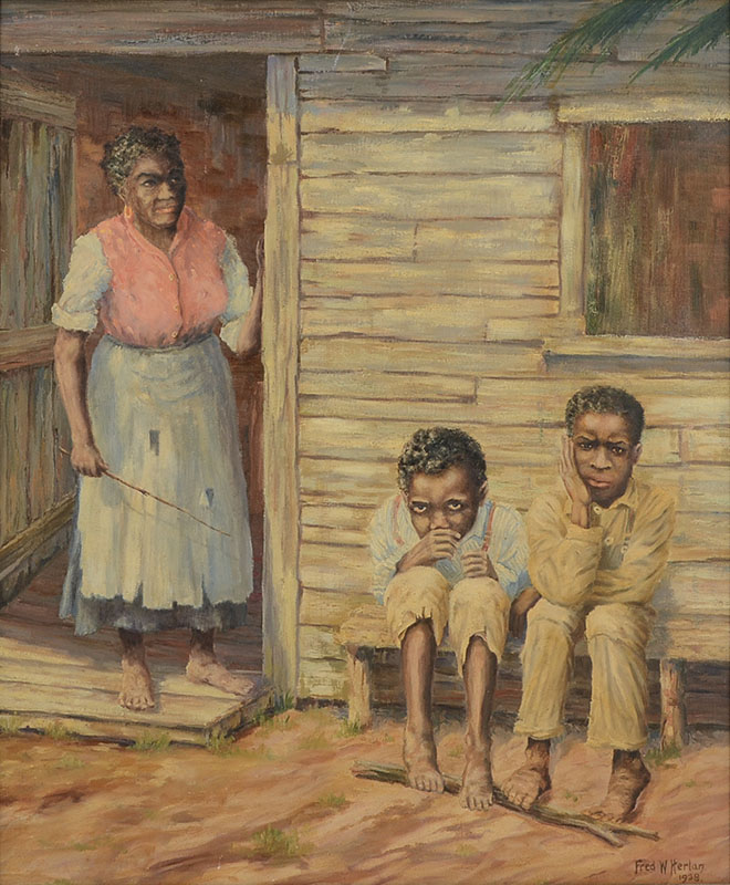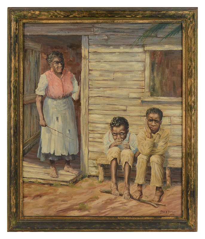 HERLAN, Fred, (American, 20th Century): ''The Culprits'' Oil on Canvas, 24'' x 20'', signed lower right, dated 1938, exhibition label affixed verso, framed, 27.5'' x 23.25''.