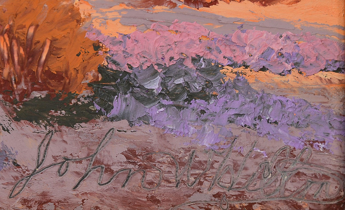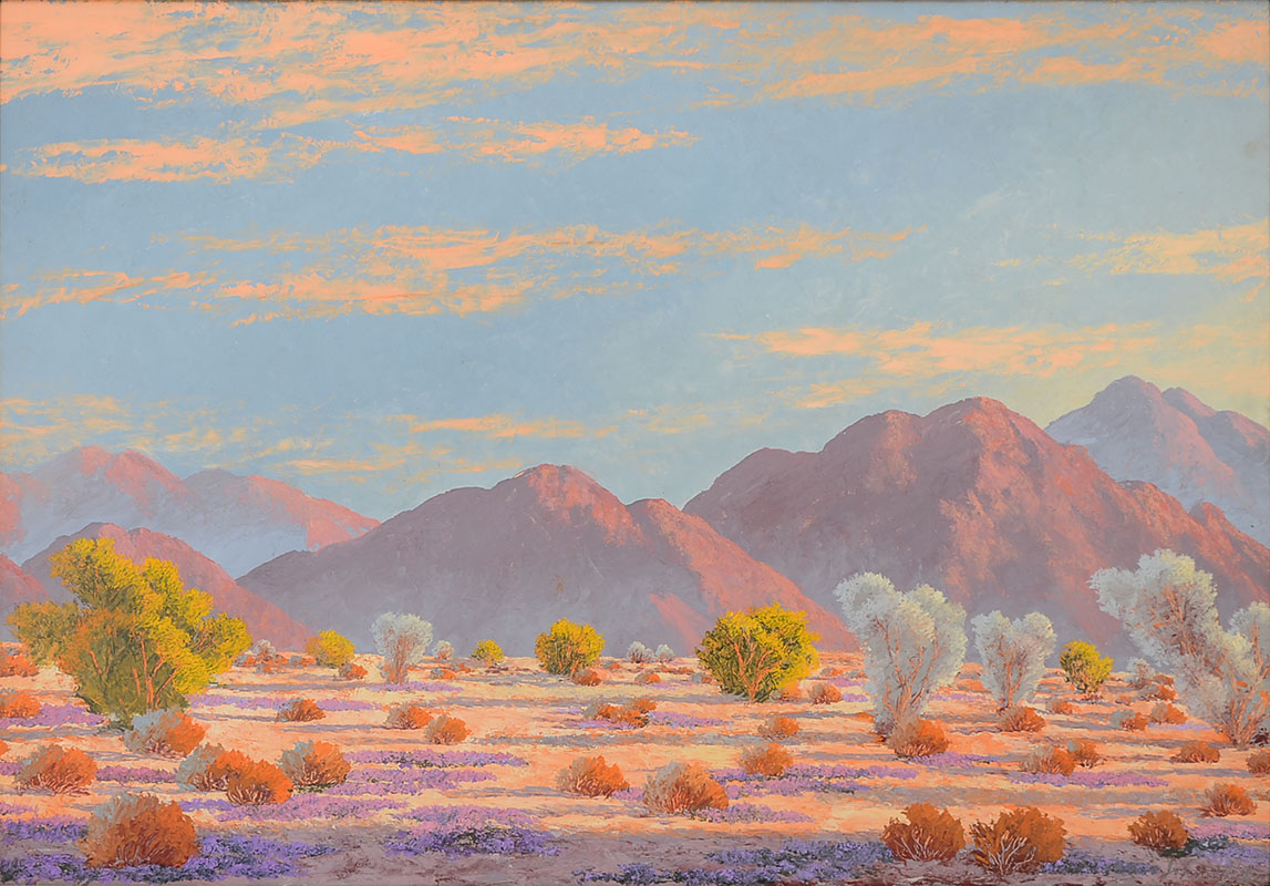 HILTON, John, (American, 1904-1983): Western Desert Landscape, ''Contentment'', Oil/Board, 24'' x 34'', signed lower right, titled verso, custom frame, 31.5'' x 42''. John Hilton was known for his desert landscapes.