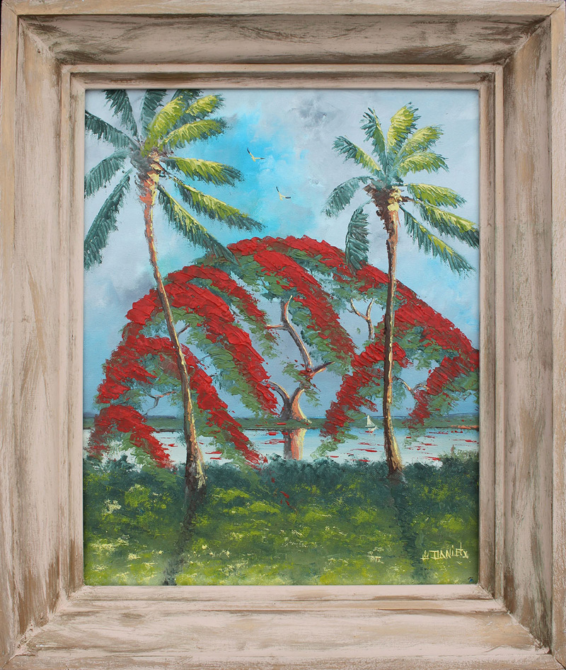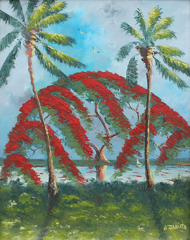 DANIELS, Willie, (American, 20th Century): Florida Landscape with Poinciana, Oil/Canvasboard, 20'' x 16'', signed lower right, framed, 24.5'' x 20.5''.