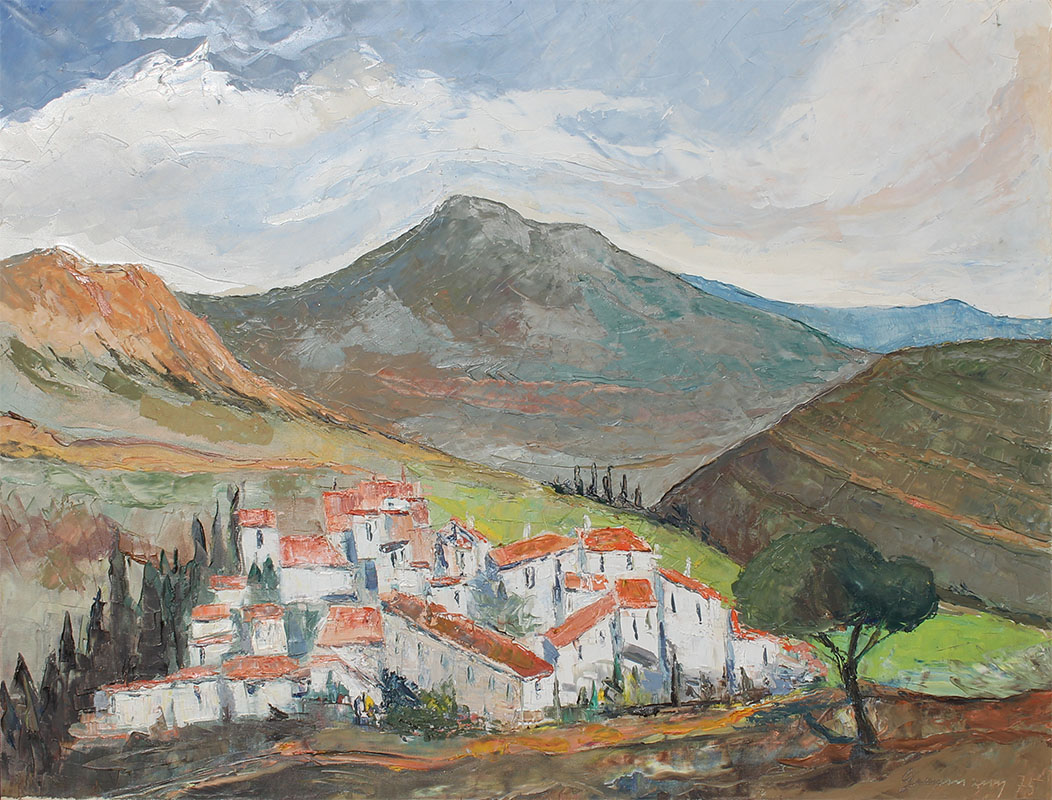 GRAUMANN MOUNTAIN VILLAGE LANDSCAPE PAINTING: Normandy Village Landscape, Oil/Canvas, 23.75'' x 31.5'', signed lower right, framed, 29.5'' x 37''.