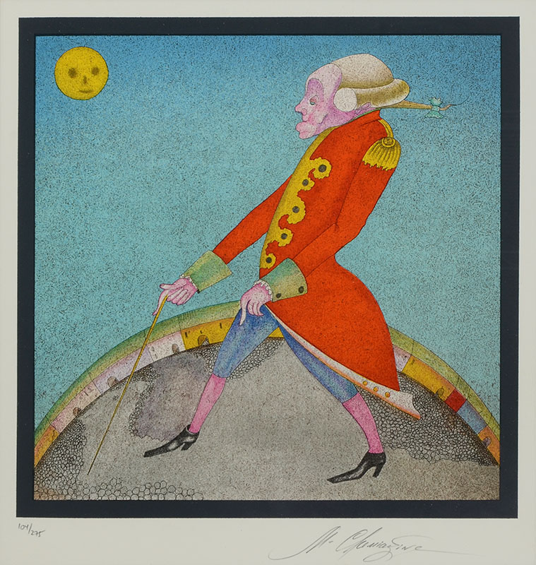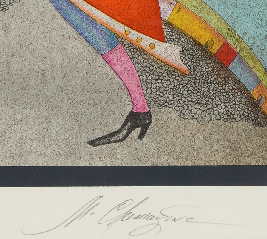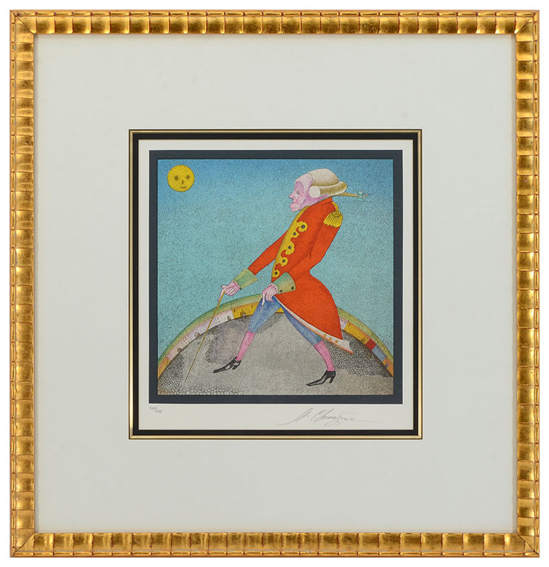 MIHAIL CHEMIAKIN LITHOGRAPH, SUITE CARNAVAL DE SAINT PETERSBOURG 13: Image size 13'' x 12.5'', pencil signed lower right, numbered lower left 101/275, framed, 25'' x 24''.