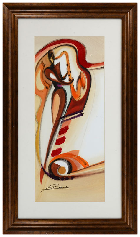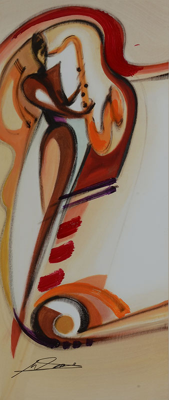 ALFRED GOCKEL MIXED MEDIA ''JAZZ PLAYER'': Paper size 27.5'' x 11.75'', signed lower right, framed, 38'' x 22''.