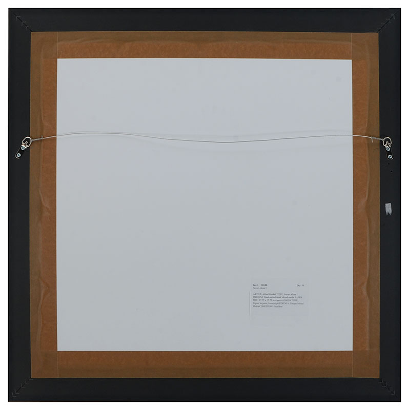 ALFRED GOCKEL MIXED MEDIA ''NEVER ALONE I'': 17.5'' x 17.5'', signed lower right, framed, 28'' x 28''.
