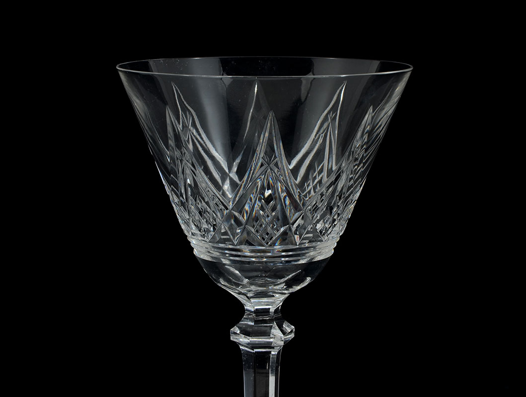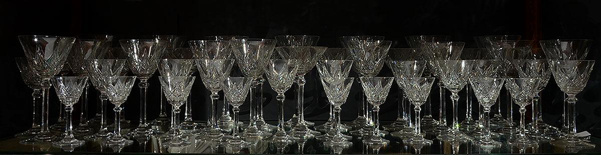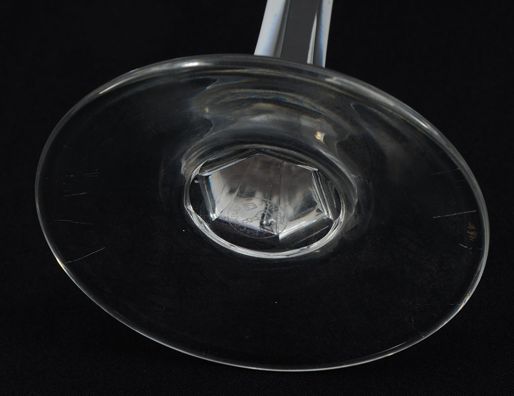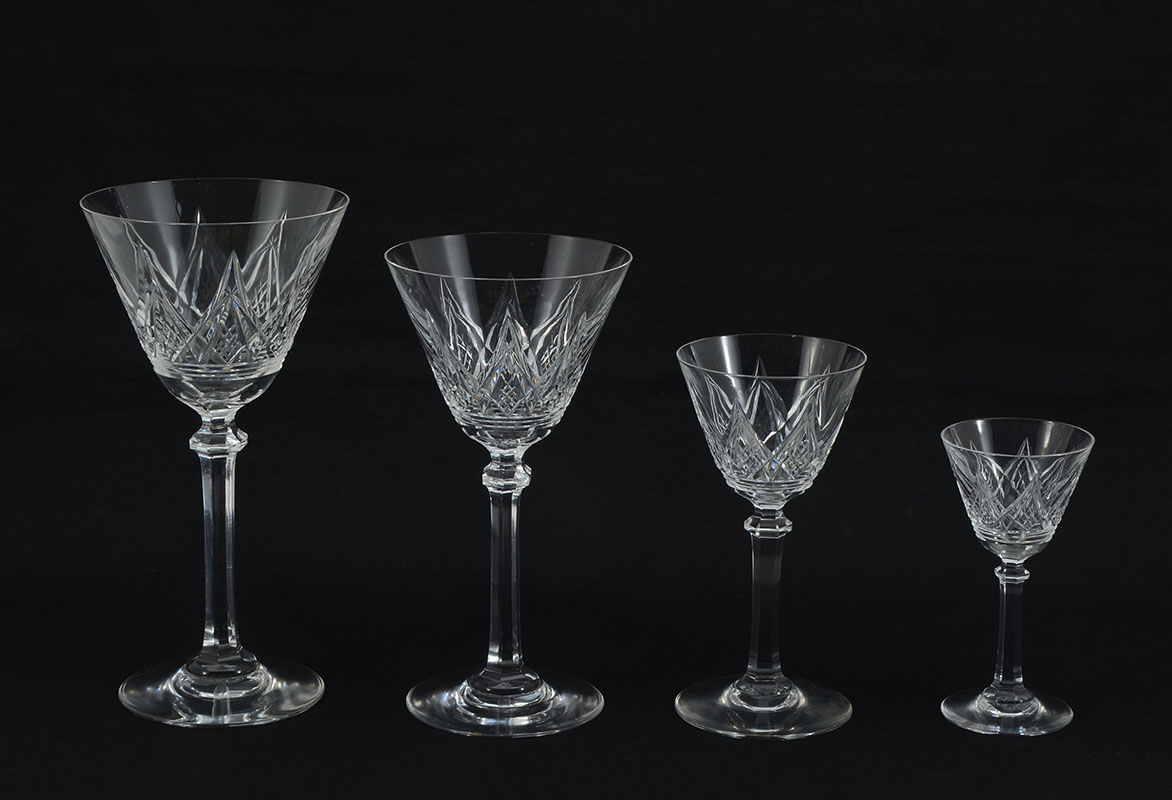 COLLECTION OF BACCARAT CRYSTAL STEMWARE: Approx. 38 pieces by Baccarat crystal with criss cross and spear point motifs to include 5 water (7 1/4'' h.), 6 claret wine (6 1/2''), 9 champagne (6 1/4''), 10 wine (5 1/4''), 8 cordials( 4 1/8'').