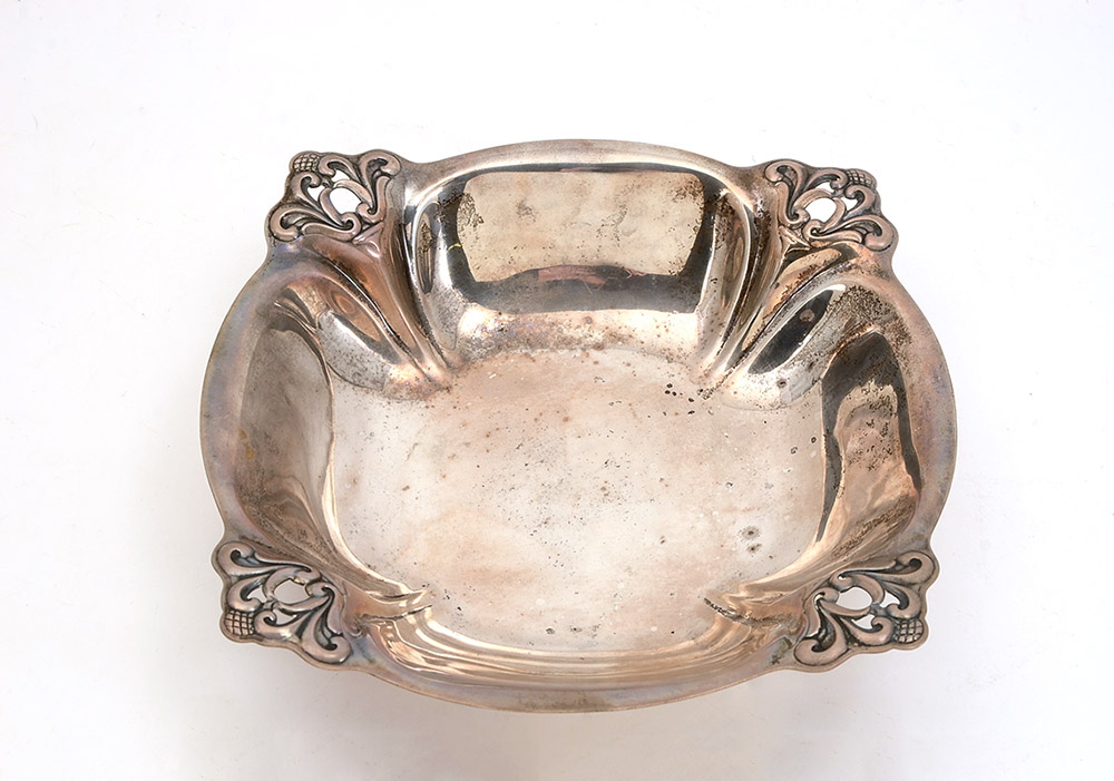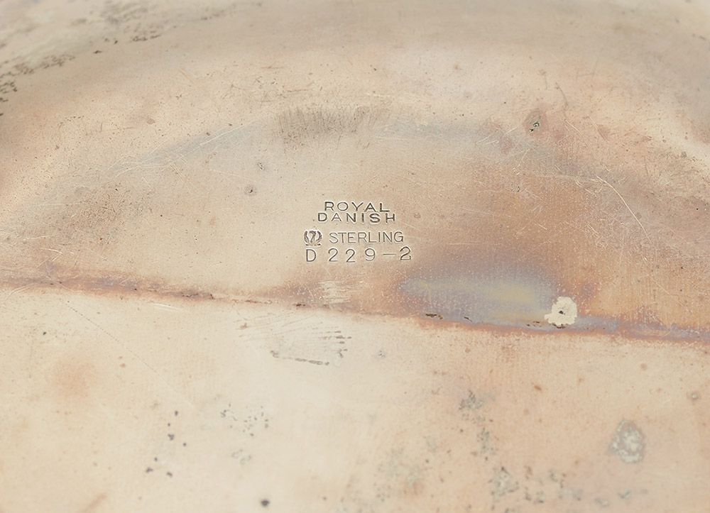 INTERNATIONAL ROYAL DANISH STERLING VEGETABLE BOWL: Vegetable with reticulated corners in the Royal Danish pattern by International Silver. Marked with D-229-2, measures 2'' h. x 10'', approx. 22.0 troy oz.