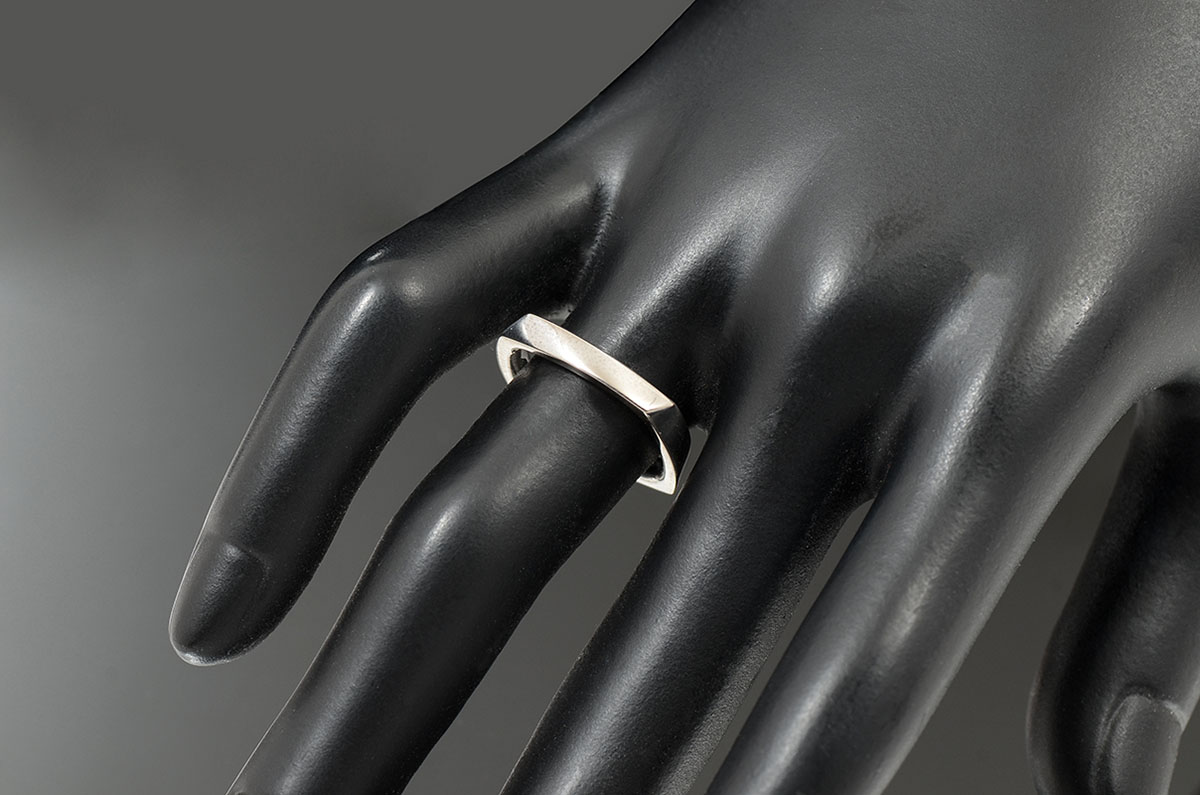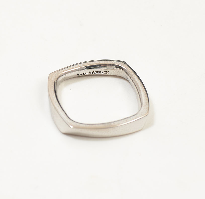 18K ''TORQUE'' BAND FOR TIFFANY & CO. BY DESIGNER FRANK GEHRY: Handsome and contemporary white gold ring. Size 6. Total weight 6.0 grams.