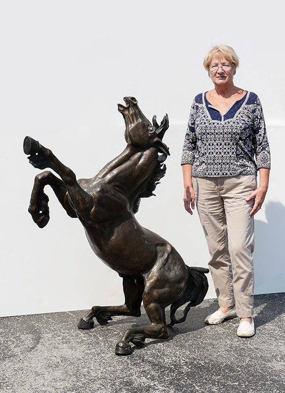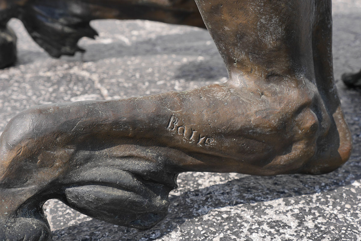 LARGE BRONZE REARING STALLION SCULPTURE: 56'' h, signed on the foot Barye, original purchase in Las Vegas for reportedly $10,000.