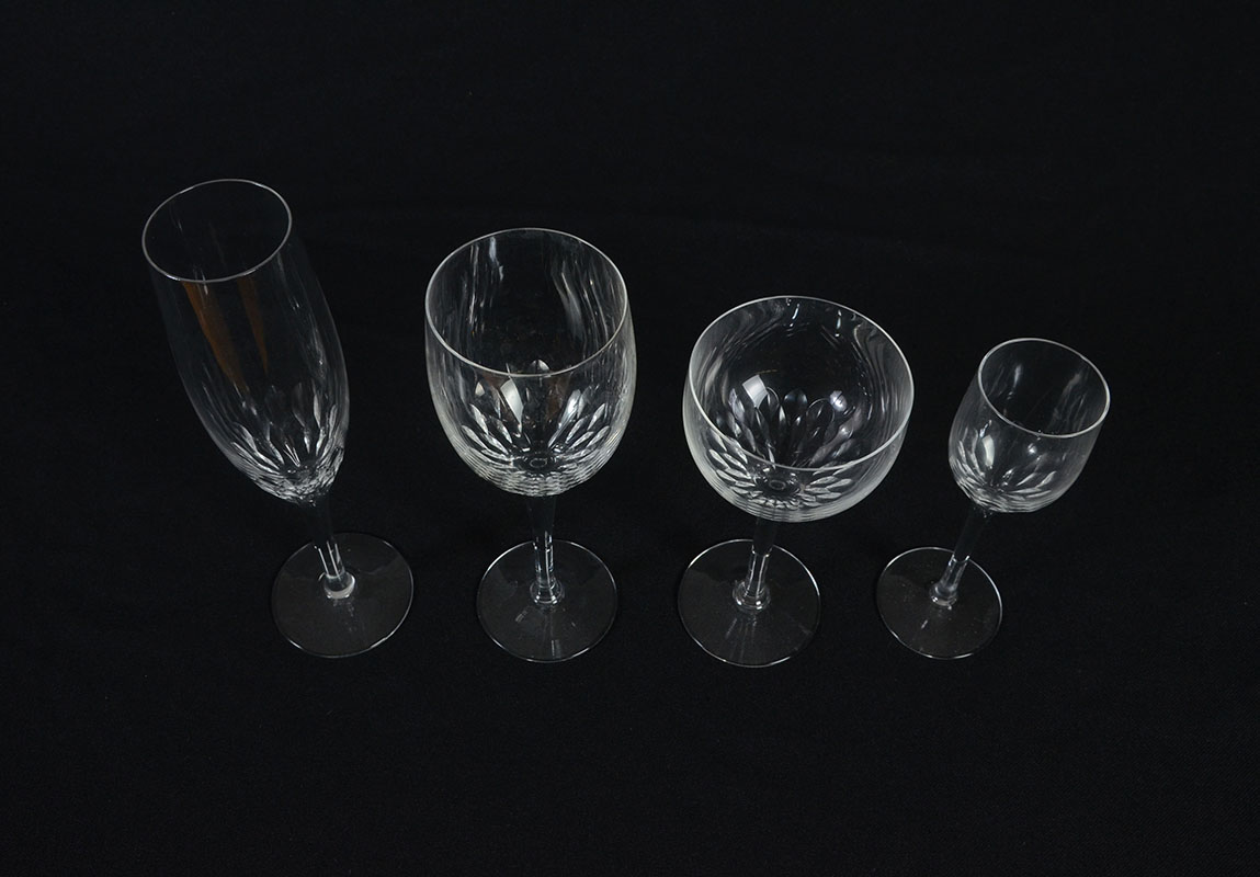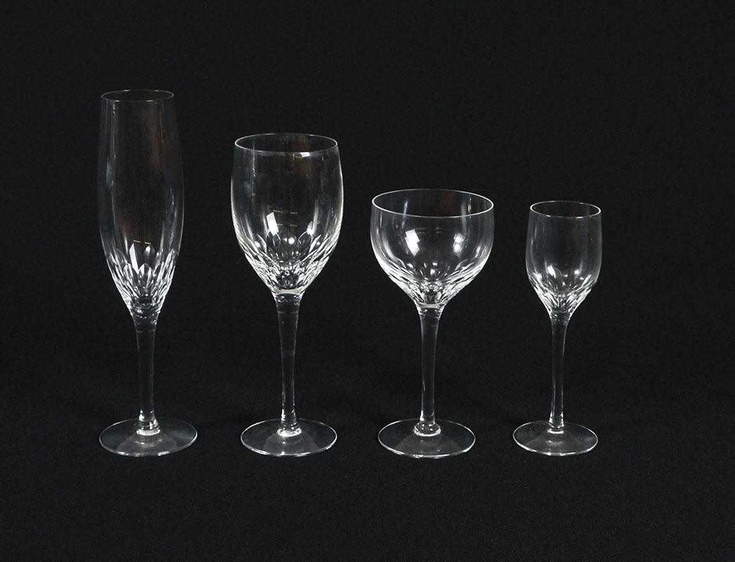 42 PIECE ORREFORS PRELUDE CRYSTAL STEMWARE: 42 pieces total in the Prelude pattern by Orrefors to include 12 claret wine (8 3/8''), 12 white wine (5 7/8''), 12 champagne flutes (8 3/8''), 6 sherry/cordial (6'').