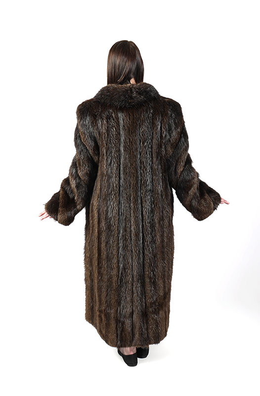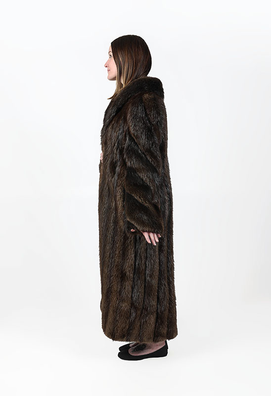 FULL LENGTH LONG HAIR BEAVER COAT: This coat is in very good condition and measures approx. 28.5'' from neck to sleeve cuff/hem, 15'' across back and 47'' length from neck to hem. Approximate size 8-10.