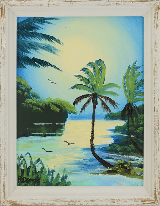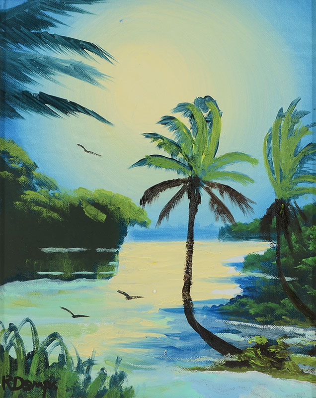DEMPS, Rodney, (American, 20th Century): Florida Highwaymen St. Lucie River nocturnal scene with birds, Oil/Board, signed lower left, 14'' x 11'', framed 15 1/2'' x 12 1/2''.