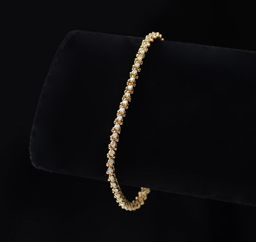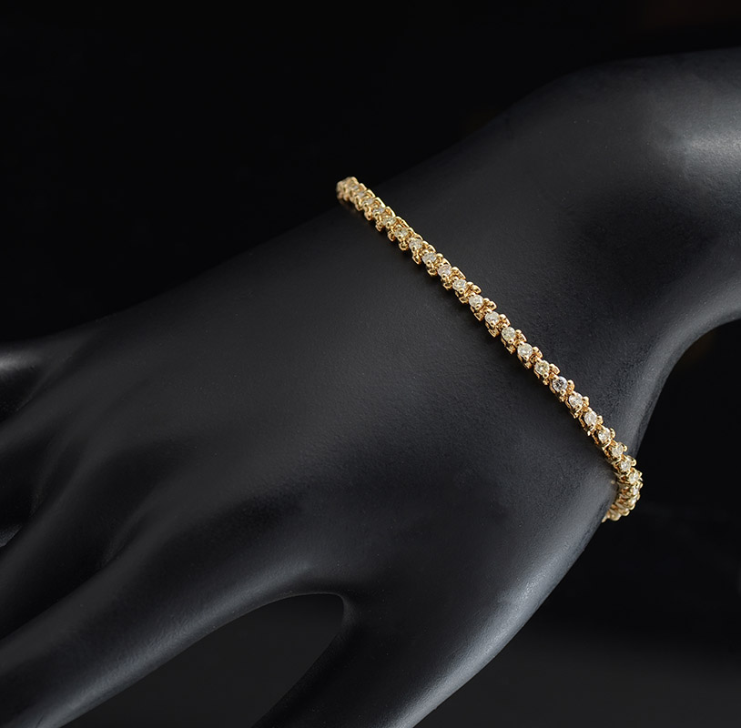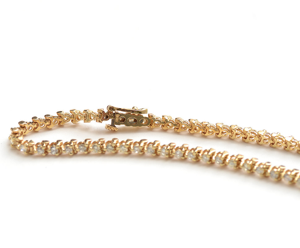 14K IN LINE 2.0CT DIAMOND BRACELET: This sweet bracelet in yellow gold has 54 round brilliant cut diamonds in-line and is 6.75'' long. 2.00CT approx. Stamped 14K with total weight of 7.7 grams. Clarity SI1-I1 and color I-J.