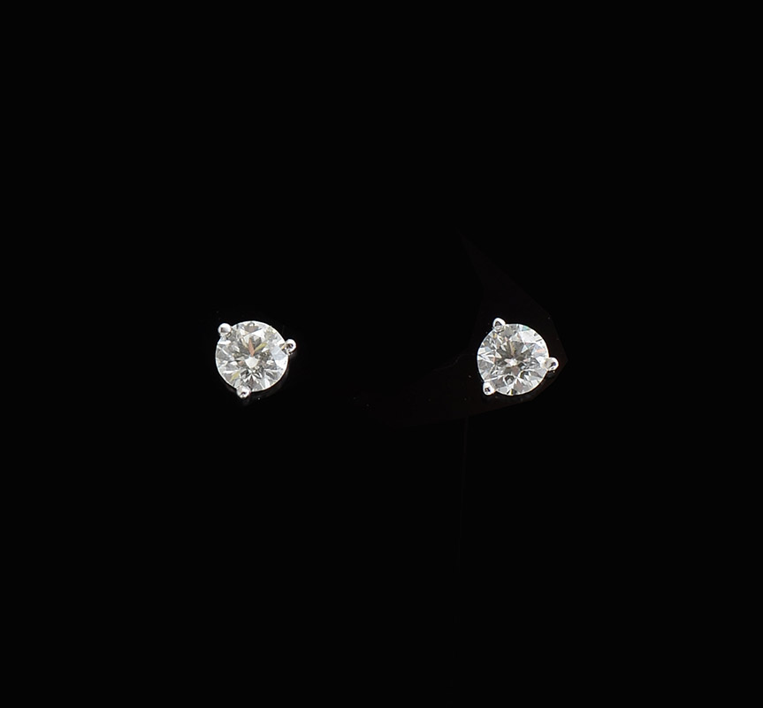 14K .47CTW DIAMOND STUDS: Martini cut diamonds set in white gold with friction backs. Slightly imperfect.