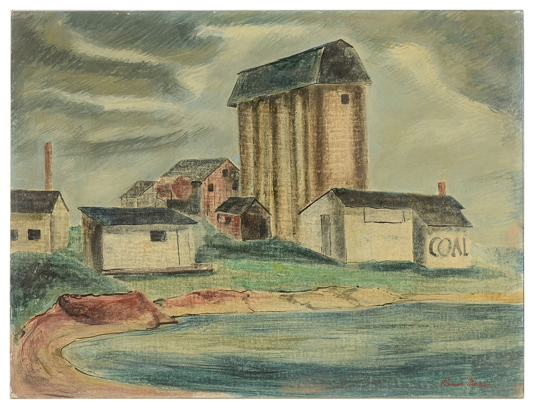 MARAZ, Roman, (American, 1911-1979): Coal Factory, Oil/Canvasboard, 21'' x 28'', signed lower right, frame, 25'' x 32''. Roman Maraz is known for painting.