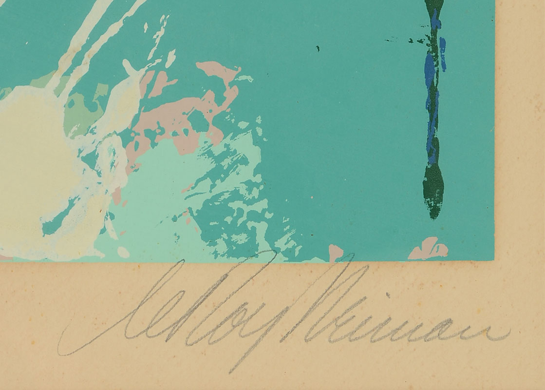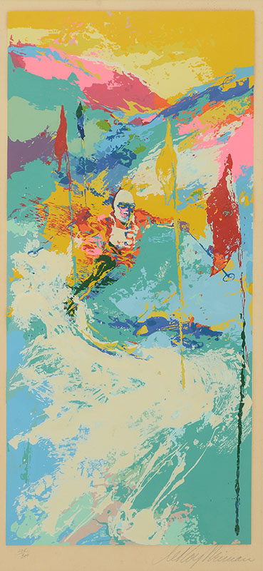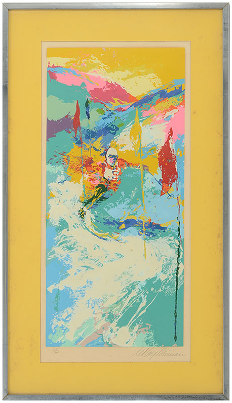NEIMAN, Leroy, (American, 1921-2012): Downhill Skiing, Serigraph, sight size 27.5'' x 13'', pencil signed lower right, 205/300 lower left, framed, 34.5'' x 19.75''. Leroy Neiman is known for his vividly colored expressionist paintings.