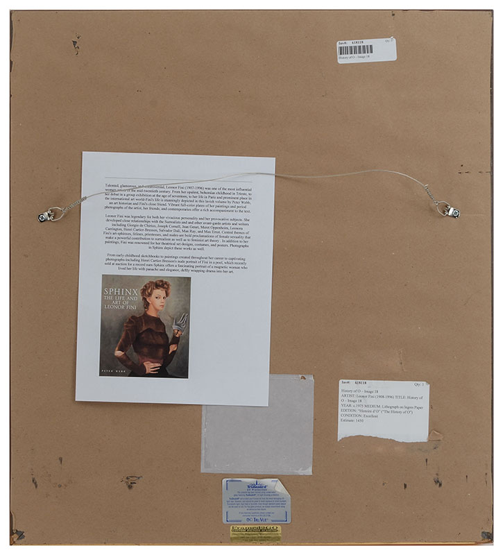 FINI, Leonor, (Argentine, 1908-1996): ''Histoire d'O'', Image 18, Lithograph on Ingres paper, framed, 25'' x 21.5''.