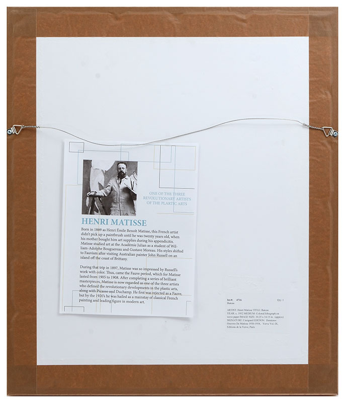 MATISSE, Henri, (French, 1869-1954): Bateau, Color Lithograph, image size 10.25'' x 14.15'', framed, 24.5'' x 21''.