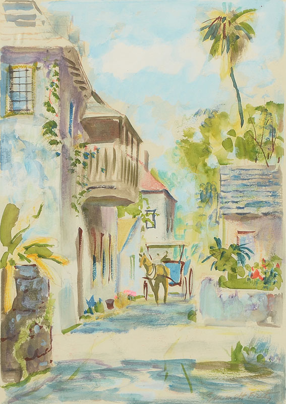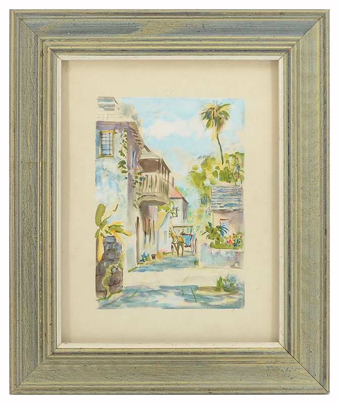 FRITZ, Emmett, (American, 1917-1995): St. Augustine Street Scene, image size 10'' x 7'', signed lower right, framed, 18.5'' x 15.5''. Emmett Fritz was also a well-known cartoonist.