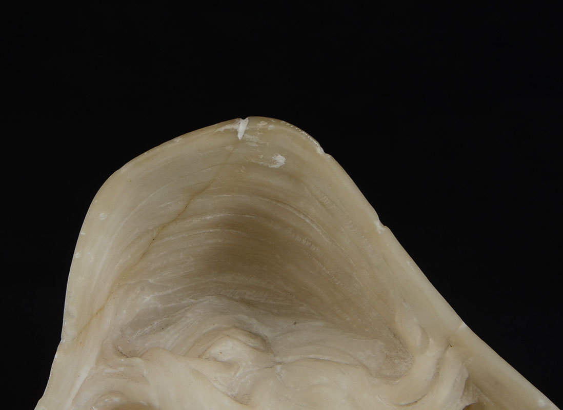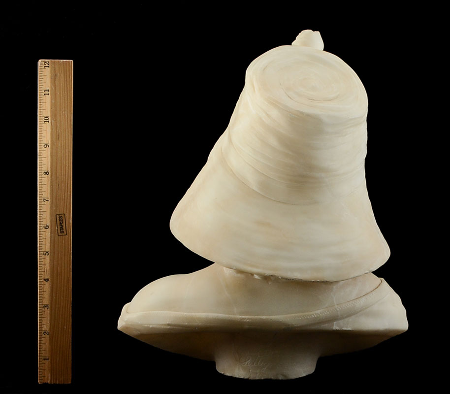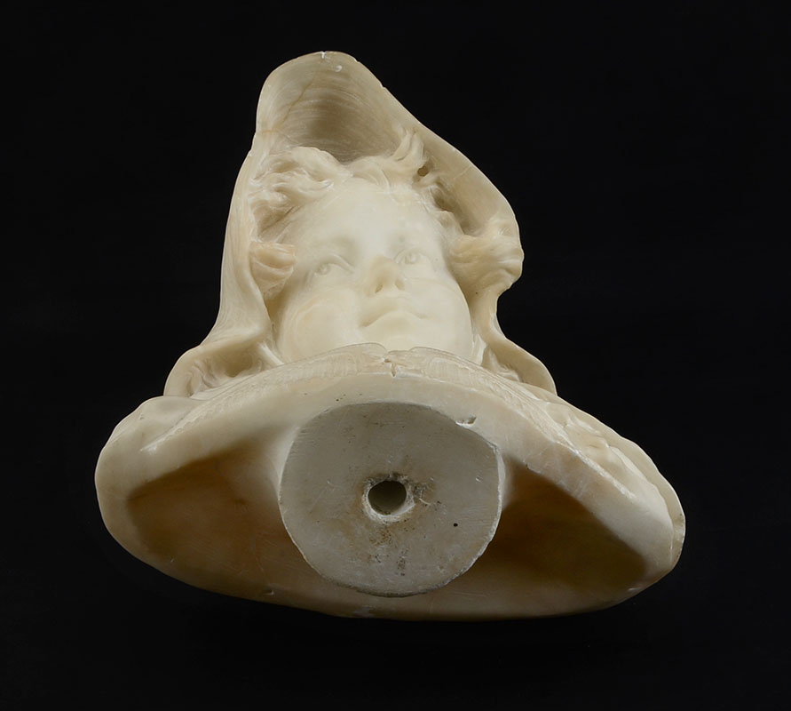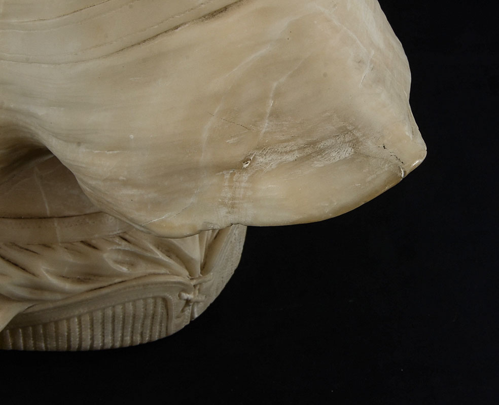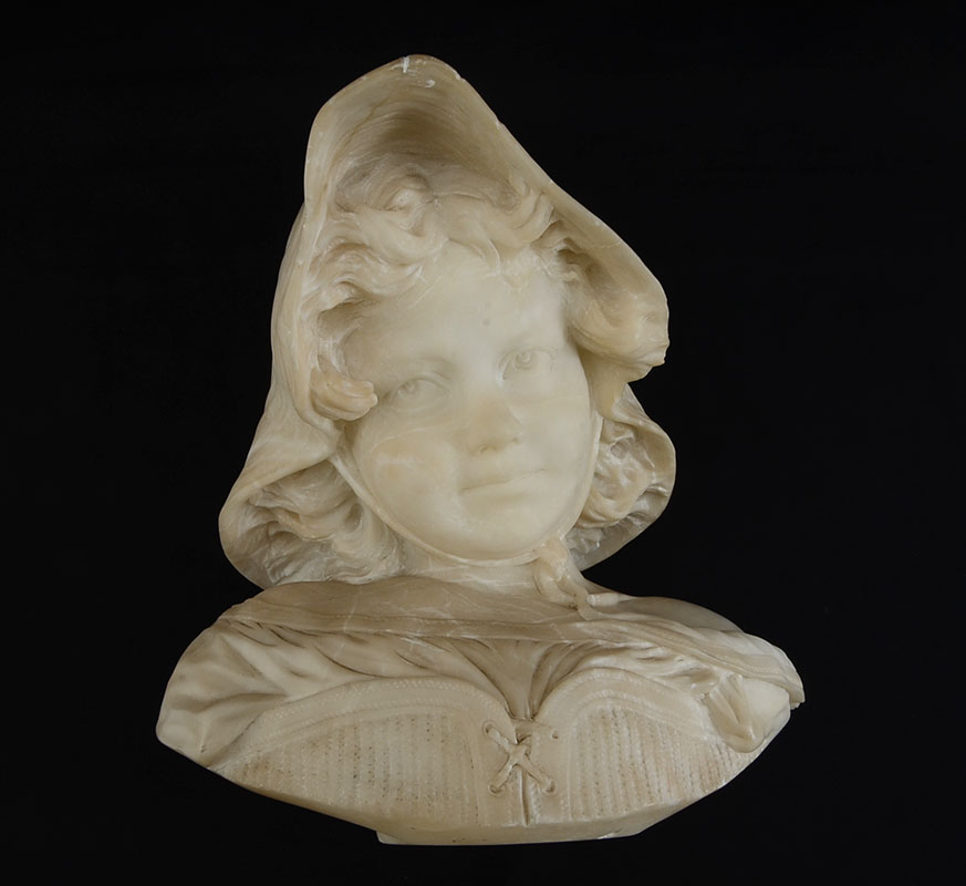 SCHEGGI, Cesare, (Italian, 1833-1876): Bust of a Small Child Wearing a Bonnet, Alabaster, 14'' h, signed verso. Paolo Scheggi is known for his conceptualism.