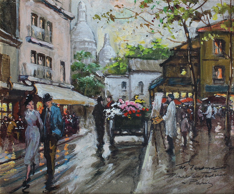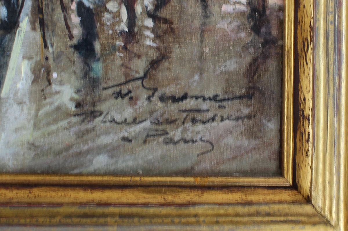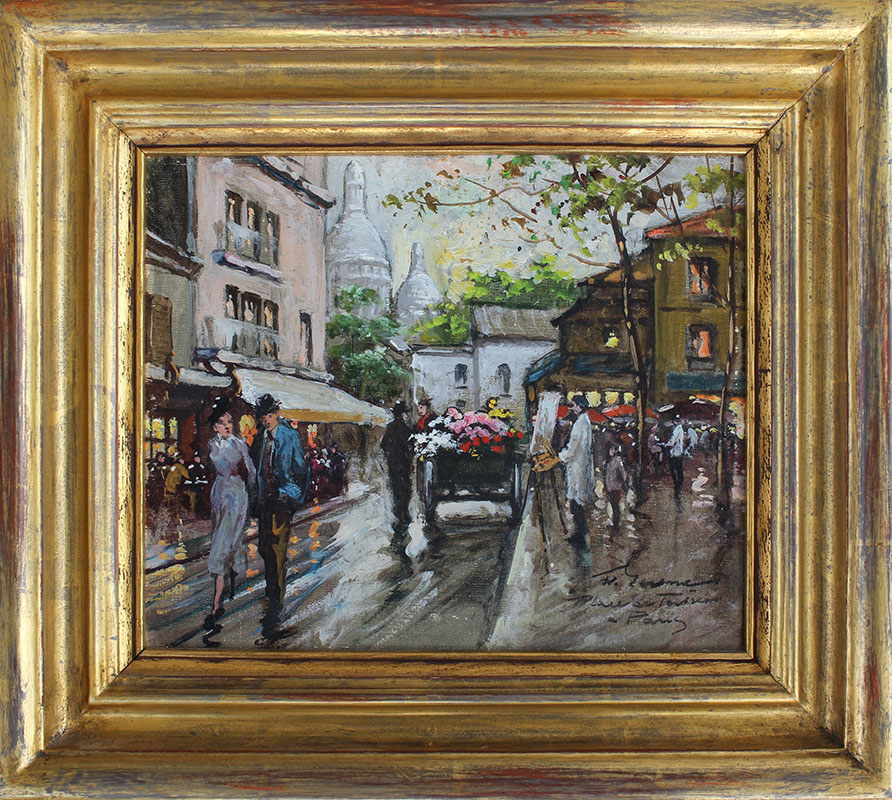 GEROME, Francois, (French, 1895-): Place du Tertre-Paris, Oil/Canvasboard, 8'' x 10'', signed and titled lower right, gilded frame, 12.75'' x 13.75''.