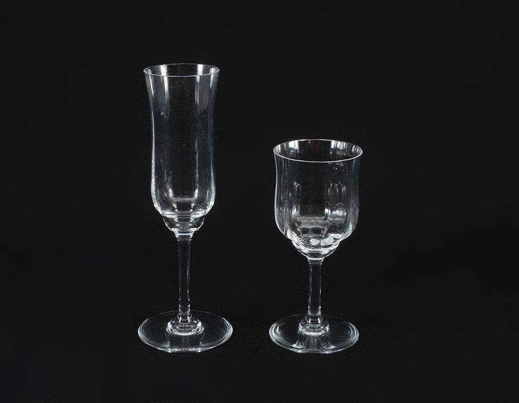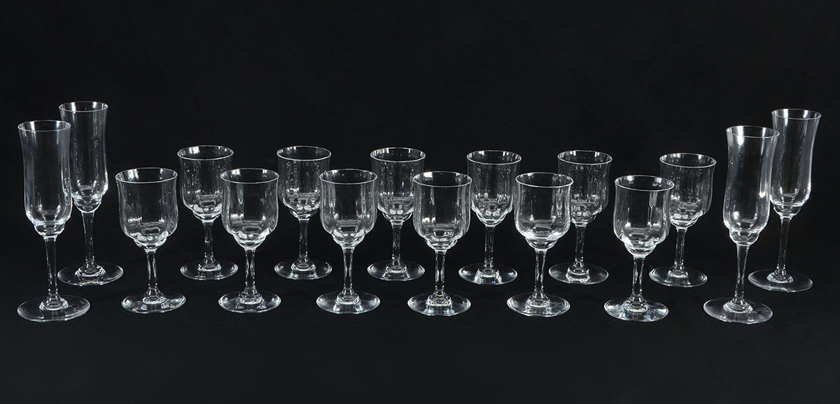 16 BACCARAT CAPRI CRYSTAL STEMWARE: 16 pieces total in the Capri pattern by Baccarat to include 12 white wine (5 1/4''), 4 champagne flutes (7 3/8'').