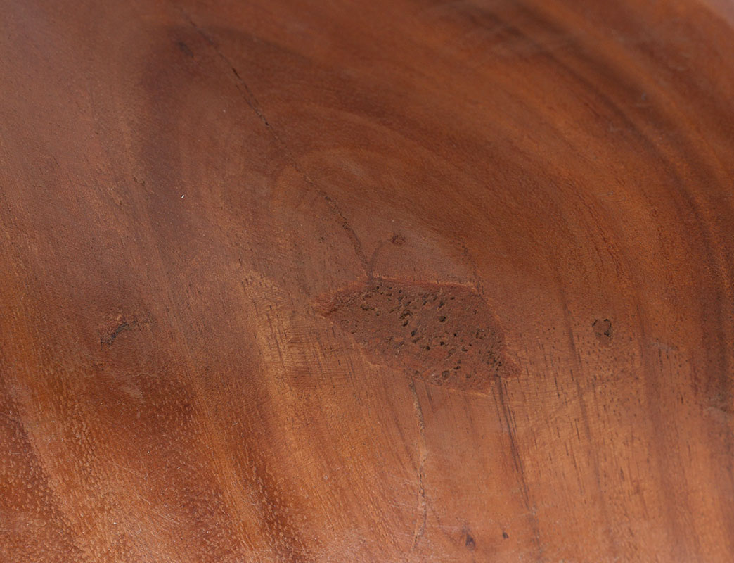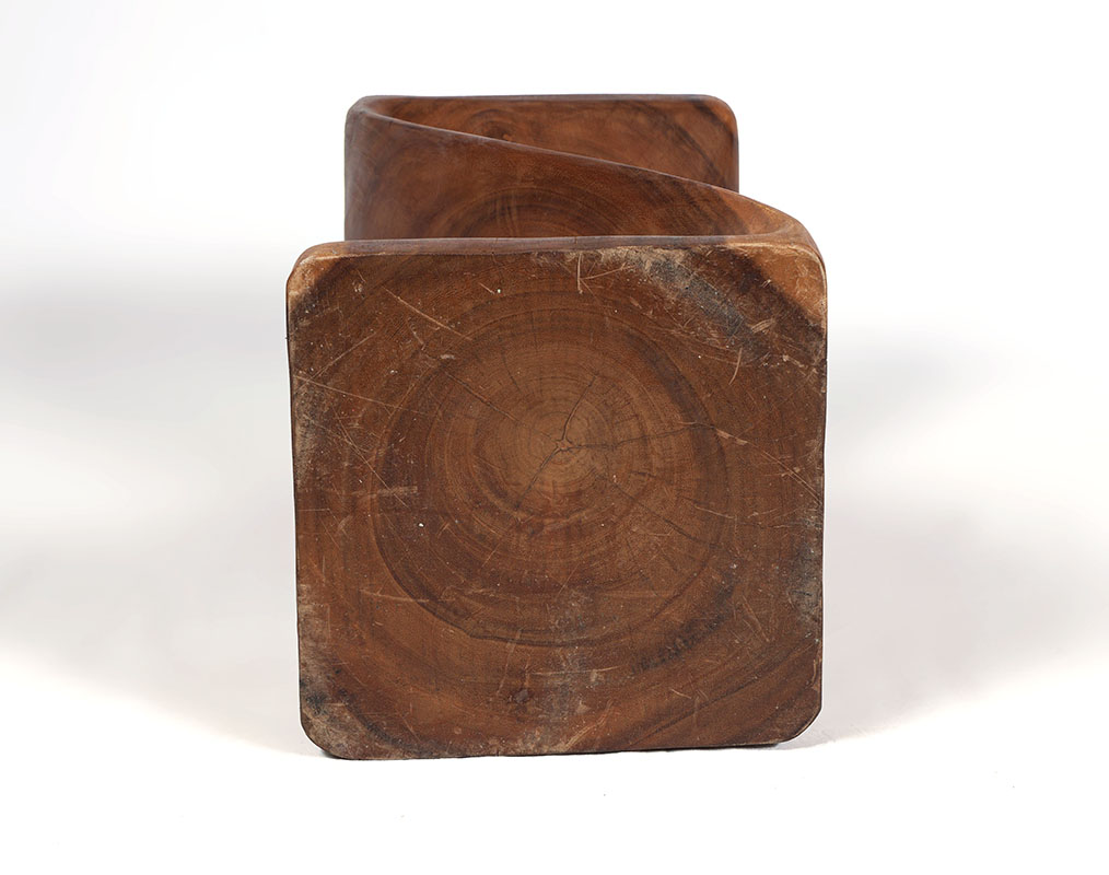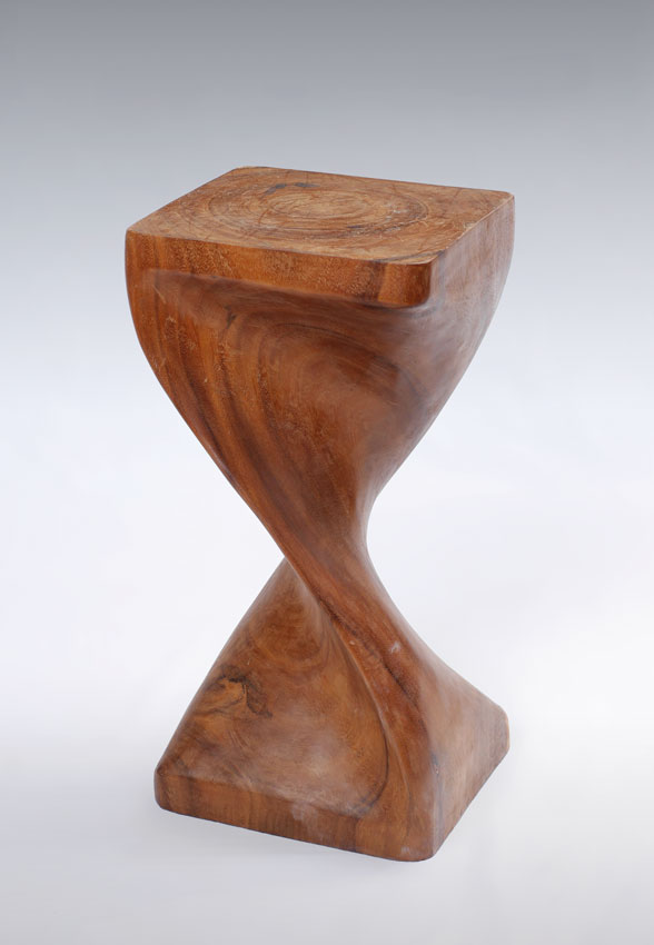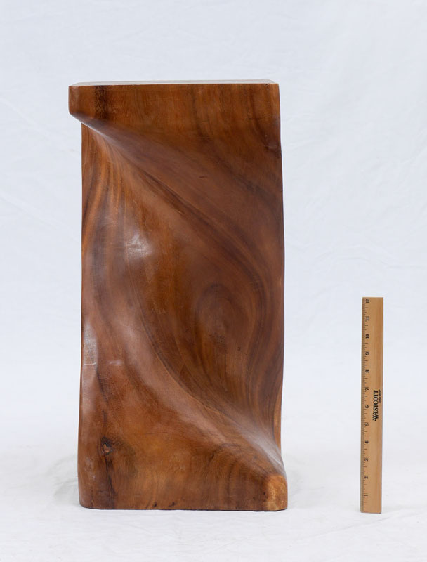 CARVED WOOD PEDESTAL STAND: Moderne carved wood stand, free form support with twist. Overall measures 23 1/4'' h. x 12'' x 12''.