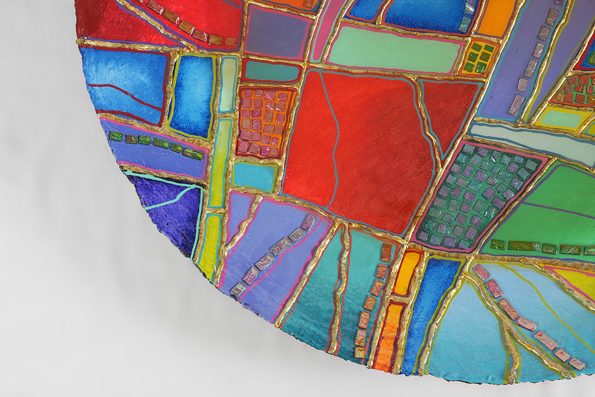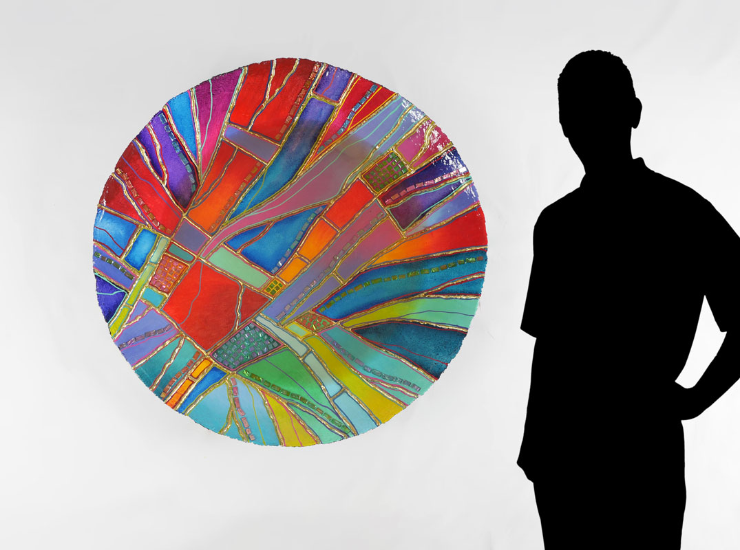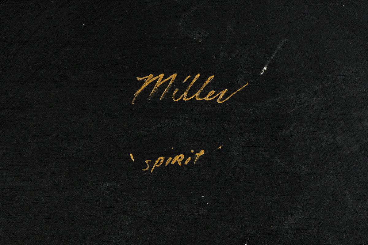 MILLER, Brian, (American, 20th Century): Large polychrome paper cast wall platter artwork title ''Spirit''. Signed and titled on resin reinforced back, original $1100 price tag, overall measures 3 3/4'' h. x 41'' dia.