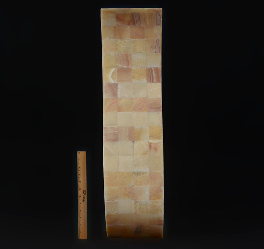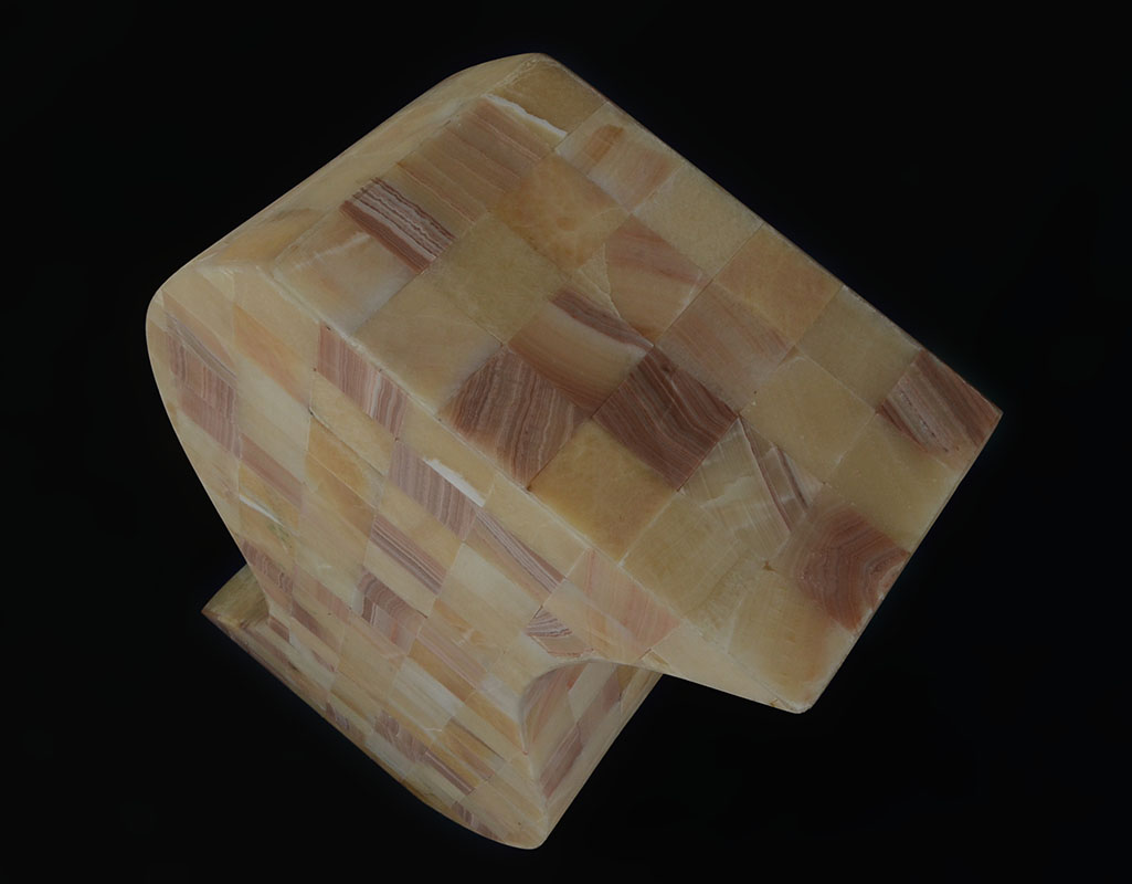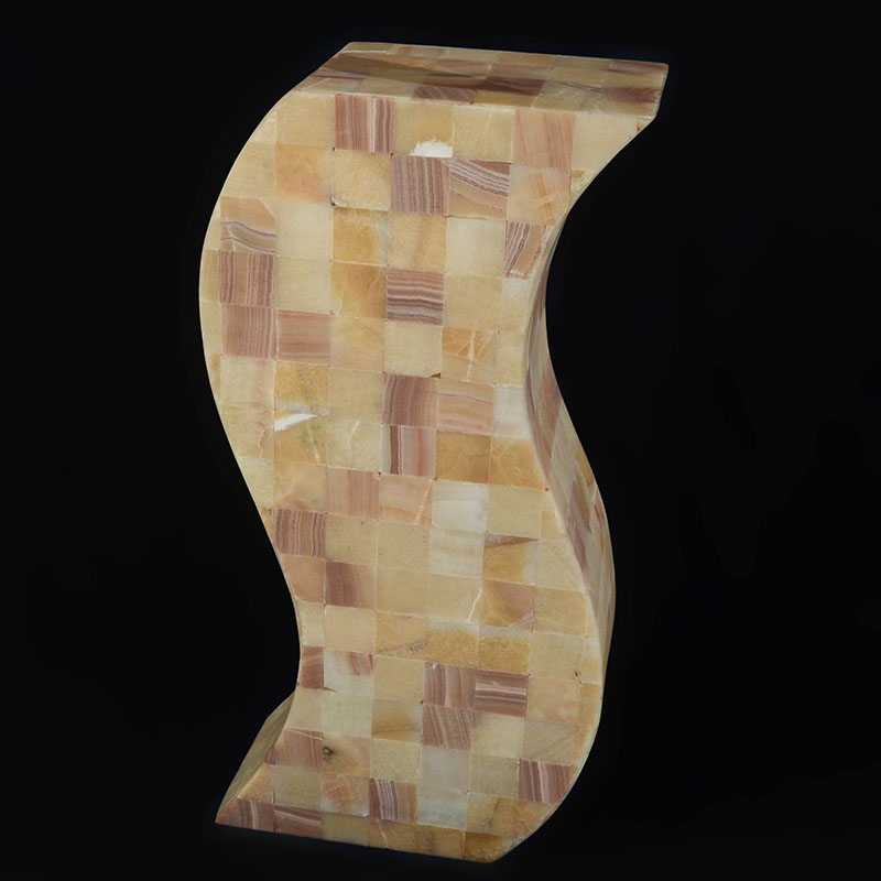 ONYX CLAD PEDESTAL / STAND: ''S'' shape pedestal clad in onyx panels, overall measures 31 1/4'' h. x 16'' x 7 3/4''.