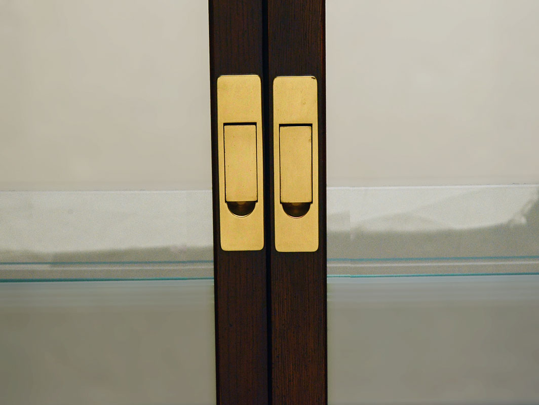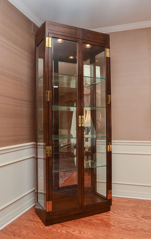 HENREDON LIGHTED DISPLAY CABINET: Model HEN 20D0, wood case with glass doors and sides, illuminated interior with mirrored back and glass shelves. Measure 82 1/4'' h. x 31 1/2'' x 15''. For a matched pair see previous lot.