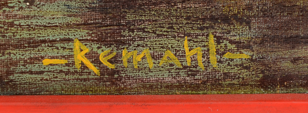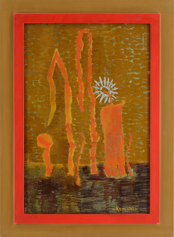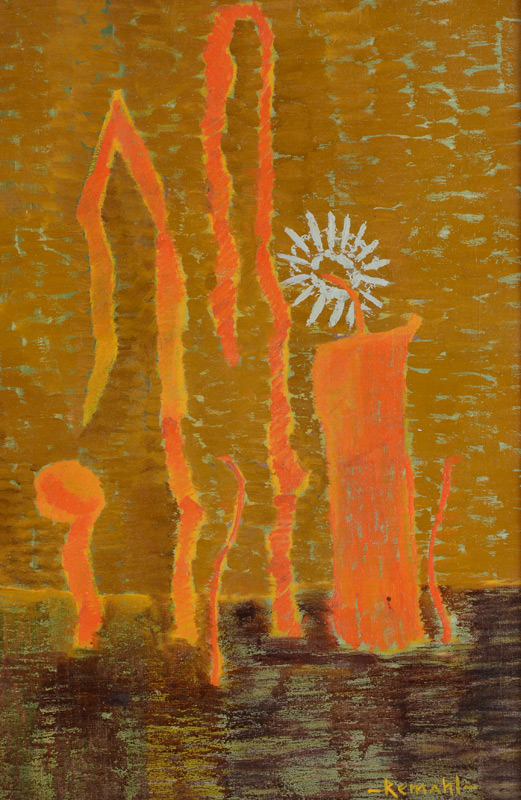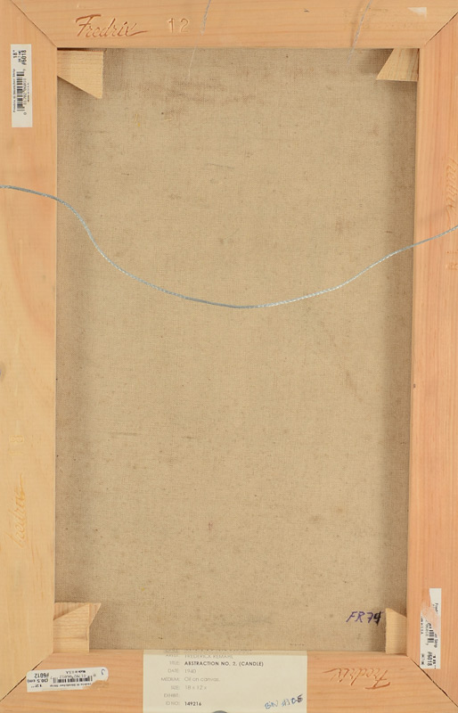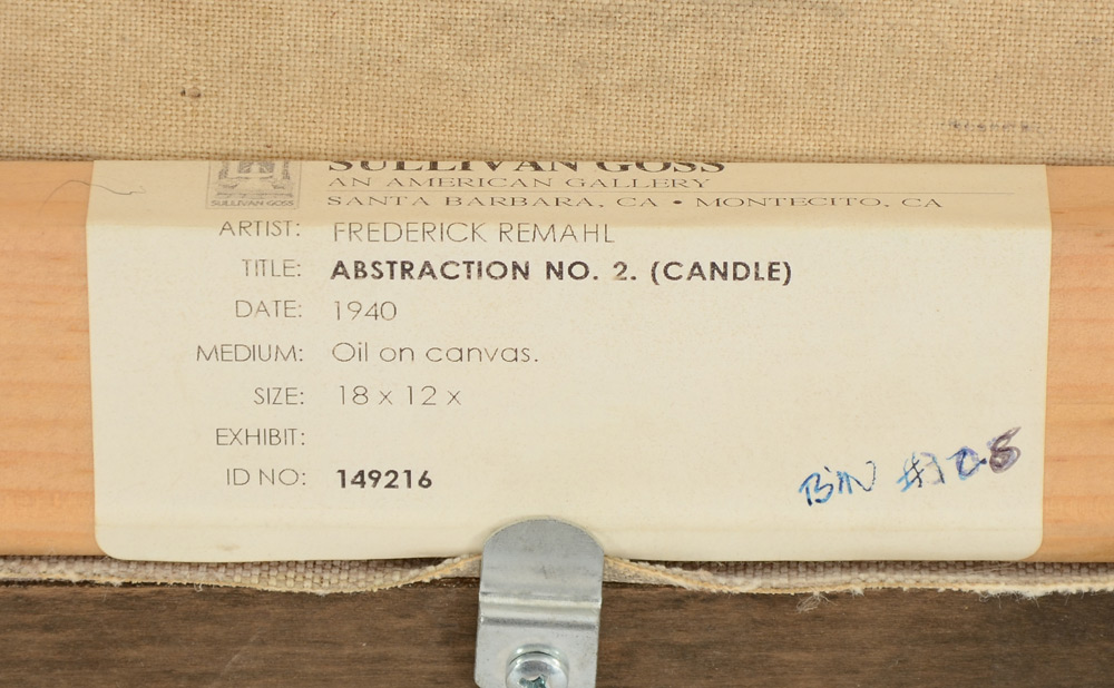 REMAHL, Frederick, (Swedish, 1901-1968): ''Abstraction #2'' (Candle), Oil/Canvas, 18'' x 12'', signed lower right, custom frame, 22'' x 16.25'', Sullivan Goss label affixed verso.