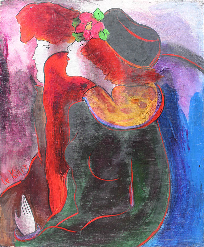 LE KINFF, Linda, (French, 1949-): ''Lucas et Lucille'', Oil/Woodpanel, 23.75'' x 19.75'', signed lower left, signed and titled verso, id number 162404, unframed. Linda Le Kinff is known for painting.
