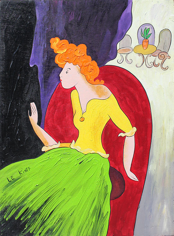 LE KINFF, Linda, (French, 1949-): Redhead Seated in an Interior, Oil/Woodpanel, 24.75'' x 18.5'', signed lower left, id number verso 175646, unframed. Linda Le Kinff is known for painting.