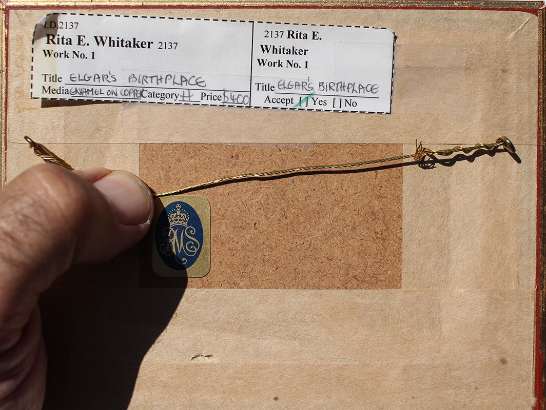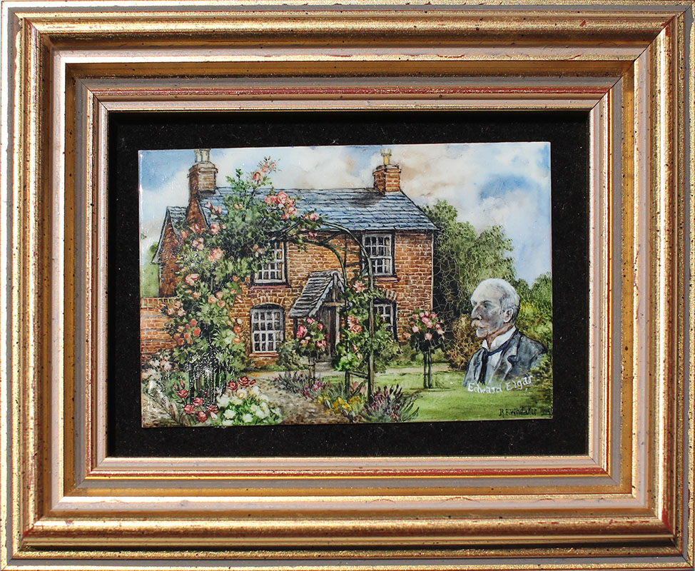 WHITAKER, Rita, (American, 19th/20th Century): ''Elgar's Birthplace'', Enamel/Copper, 2.25'' x 3.5'', signed lower right, exhibition label verso, framed, 4.5'' x 6''.