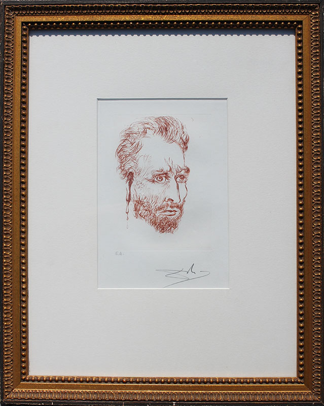 DALI, Salvador, (Spanish, 1904-1989): ''Van Gogh'', E.A. Etching, sight size 9.5'' x 6.5'', pencil signed lower right marked E.A lower left margin, framed, 20.25'' x 16.25''. Salvador Dali is known widely for his abstract and unique paintings.