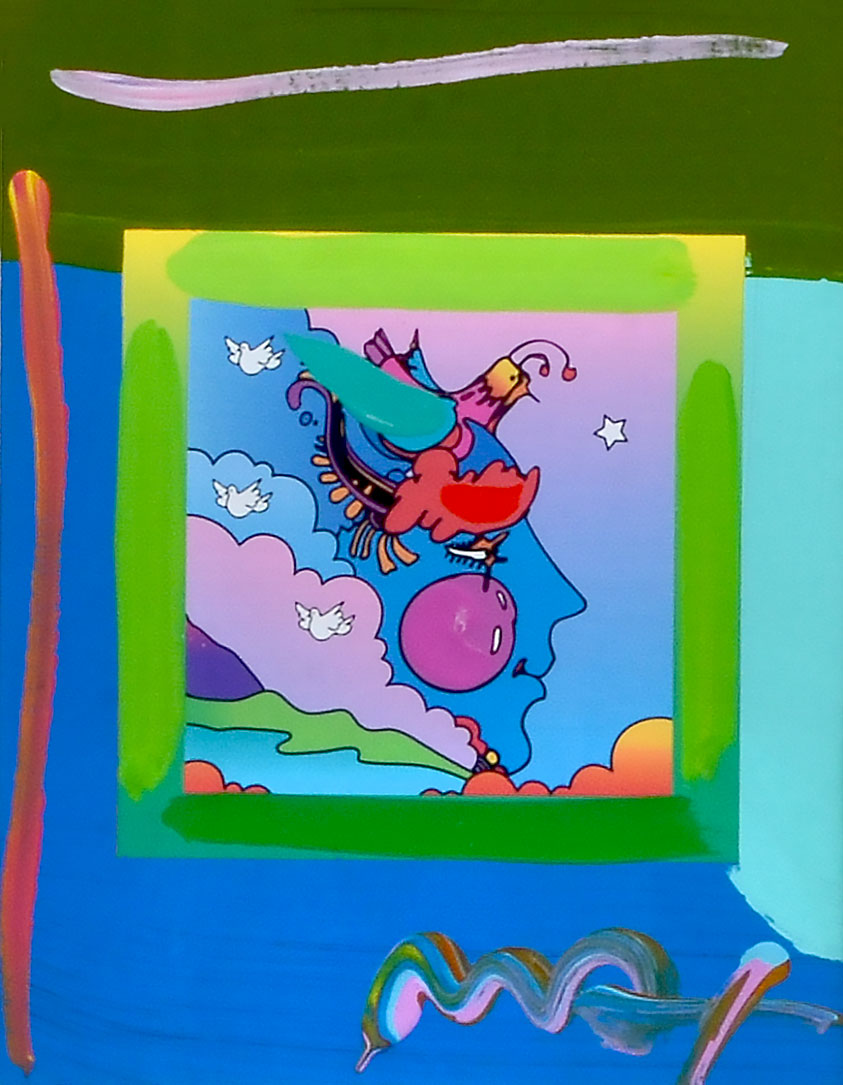 MAX, Peter, (German, 1937-): ''Woodstock Series Profile in Blends, Retro Profile Suite'', Mixed Media with acrylic painting and color lithography on paper, site size is 9'' x 7'', signed in acrylic lower right, framed 24'' x 22'', sold with Park West COA.