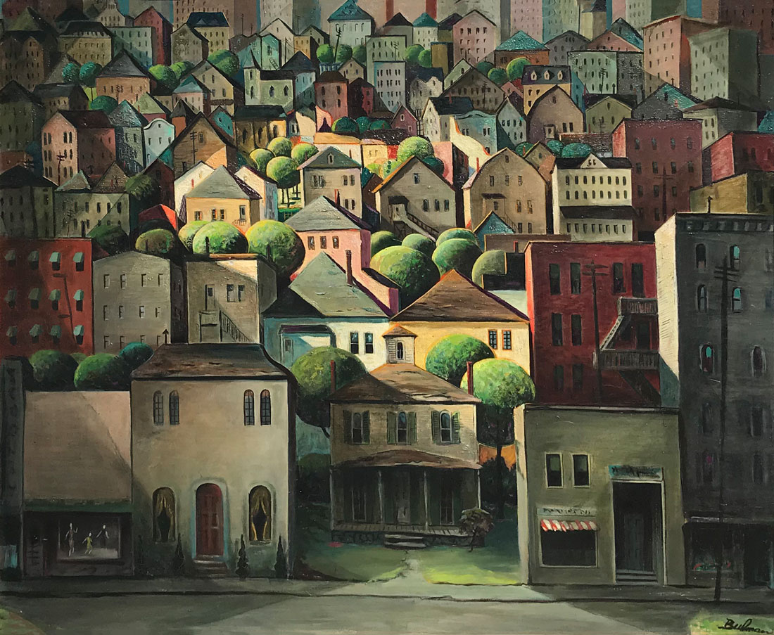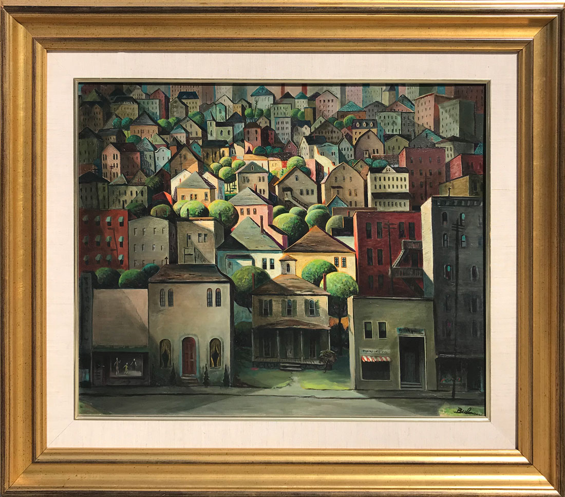 BULMAN, Orville, (American, 1904-1978): ''All the Houses'', Oil/Canvas, 24'' x 30'', signed lower right, framed, 35'' x 41''. Acquired directly from the artist.
