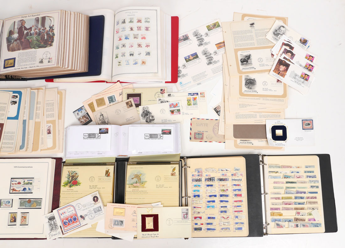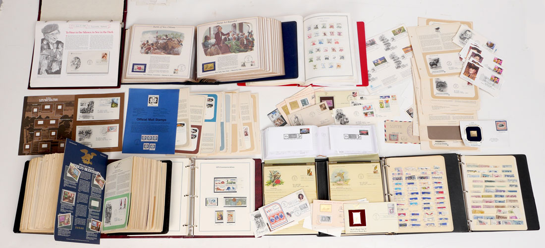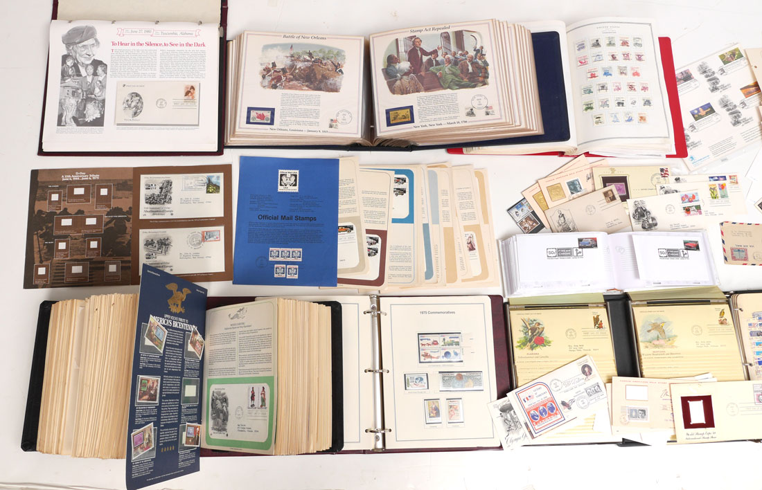 LARGE COLLECTION OF AMERICAN STAMPS & FDC: Collection of commemorative US stamps and first day covers, books to include ''The History of American Stamps'', ''The Heritage Collection'', Scott's Minuteman Album'', ''Readers Digest First Day Covers'', and more. Please note some books are not complete but do have many, many stamps.