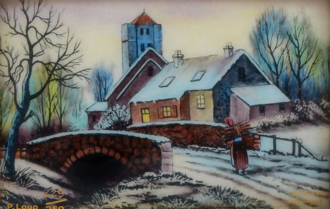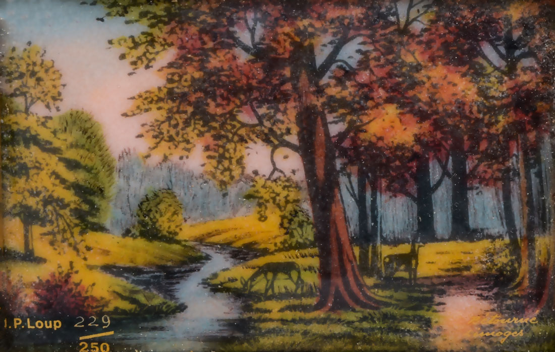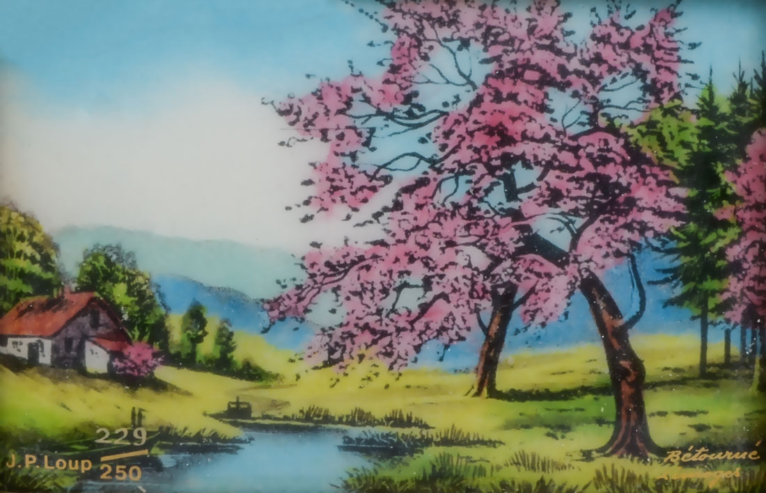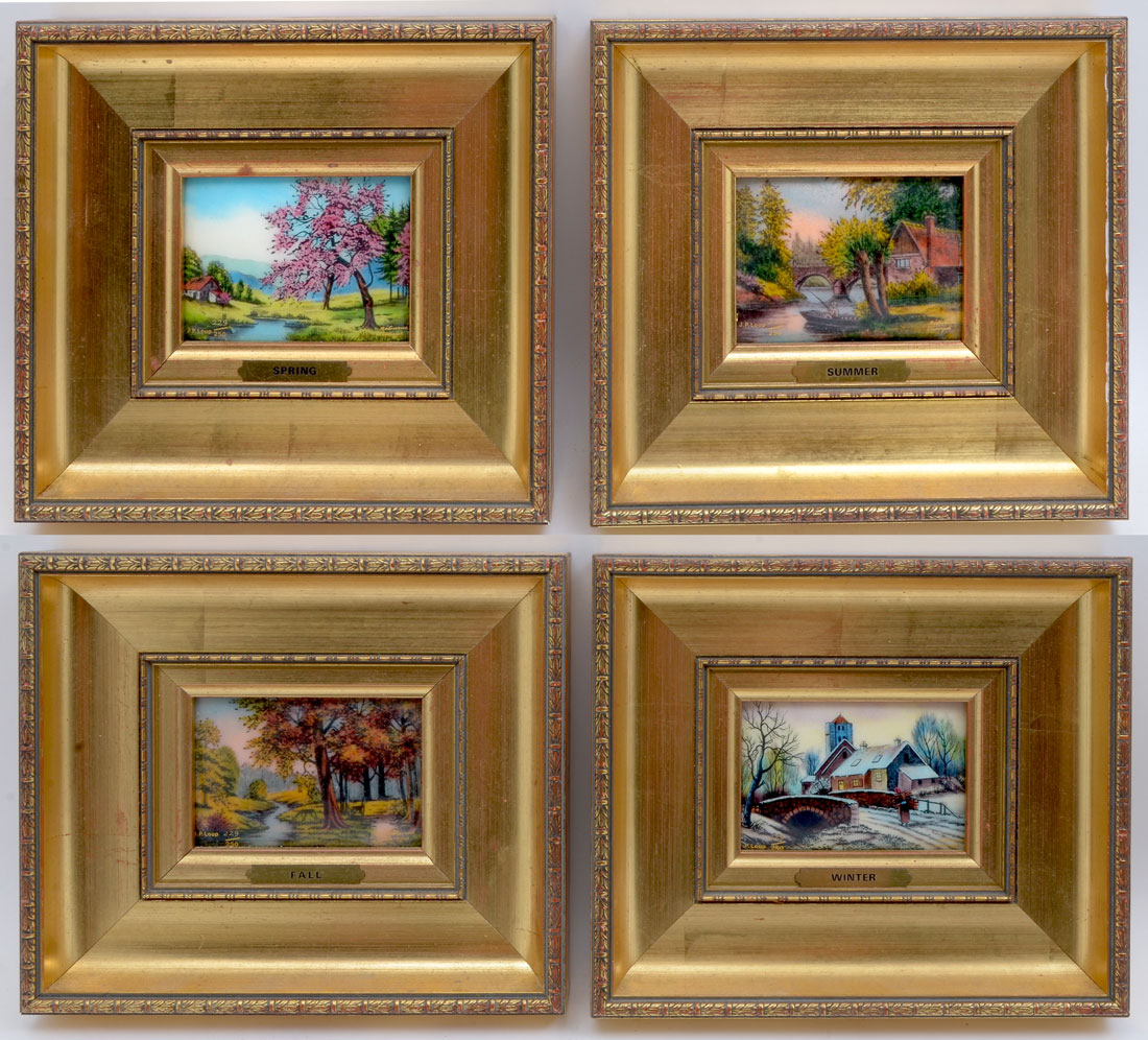 4 J. P. LOUP ENAMEL PAINTINGS ON COPPER: ''The Four Seasons'', sight size is approximately 2.25'' x 3.50'', numbered 229 of 250, matching frames measure 7'' x 8''.