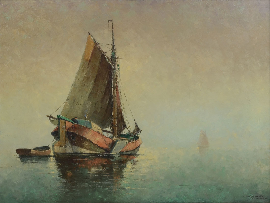 AMBRASATH, Franz, (German-American, 1889-1974): ''Marine Scene with Sailboats'', Oil/Canvas, sight size is 24'' x 31.50'', signed lower right, framed 31.50'' x 39''.