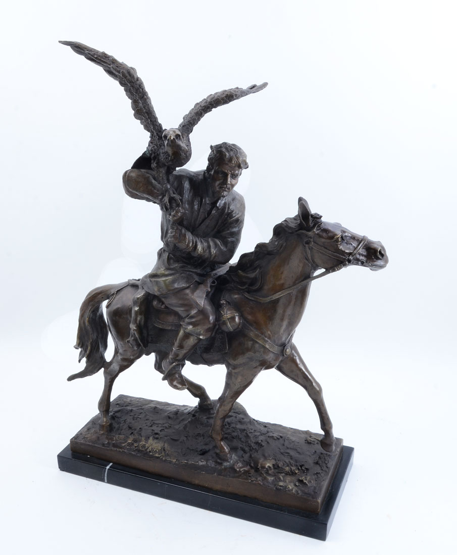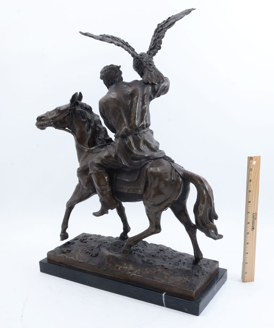 IMPRESSIVE LOOKING FALCONER BRONZE AFTER FRATIN: 25.50'' in height affixed to a marble plinth.