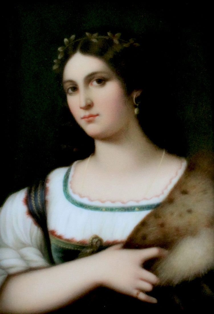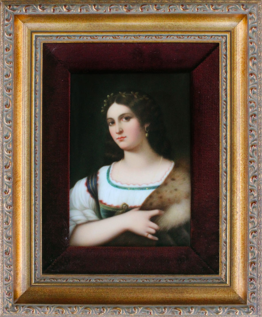 BERLIN PORCELAIN PLAQUE MINIATURE PAINTING PORTRAIT OF YOUNG BEAUTY: 7.25'' x 5'', signed lower right K. Wenzel, MR in a circle stamped verso, framed, 12.75'' x 10.75''