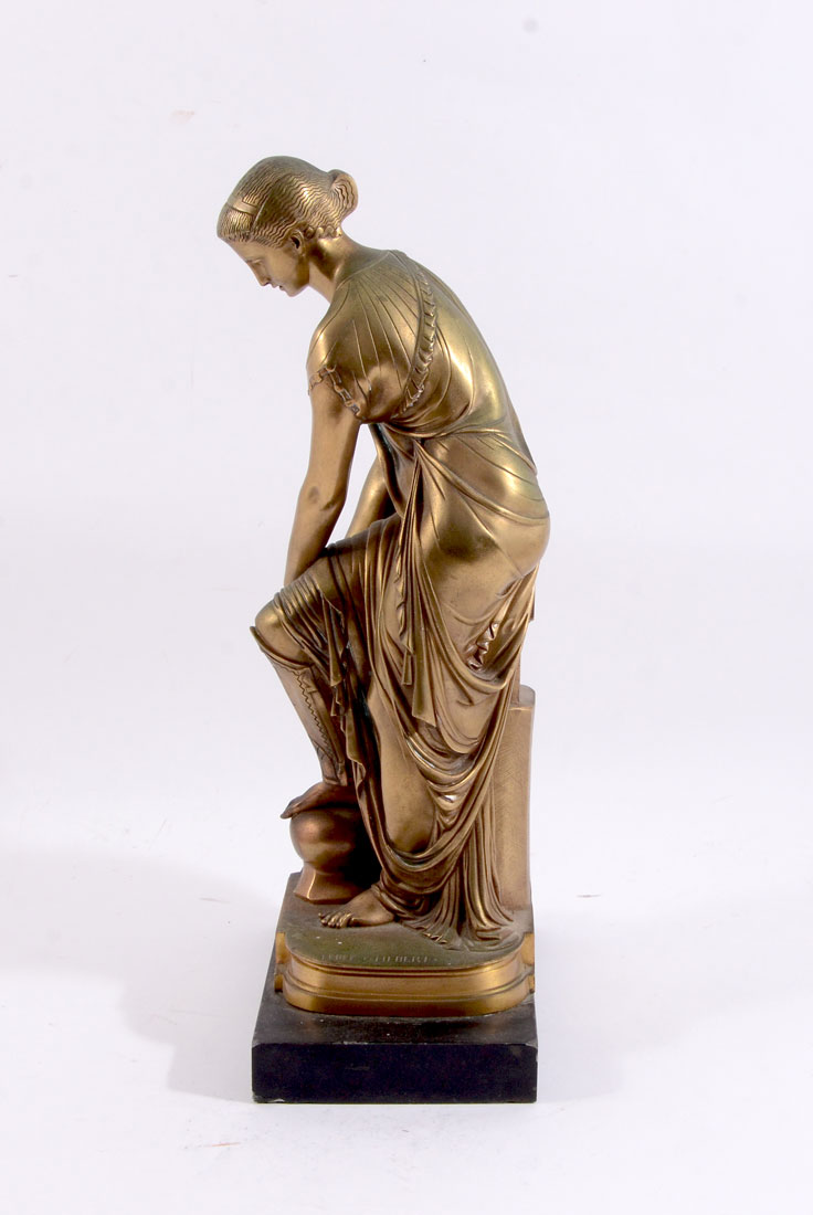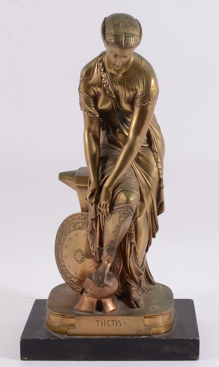 HEBERT, Pierre Eugene Emile (French, 1828-1893): ''Thetis'', Dore Bronze, 15'' H, signed & titled, stone plinth affixed to a stone plinth, 16'' overall height.