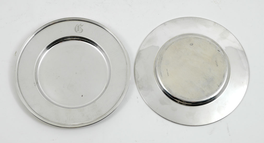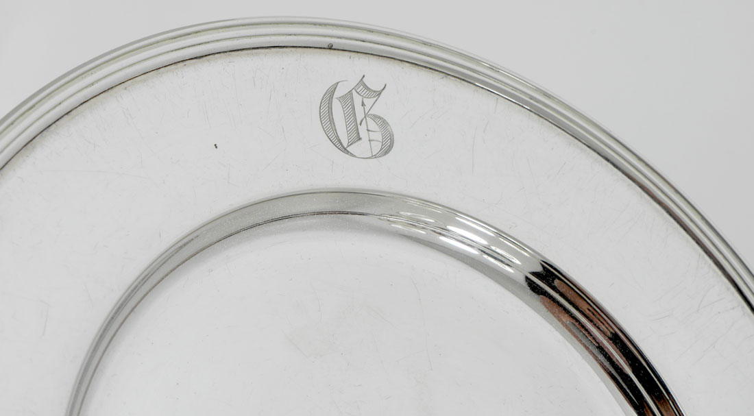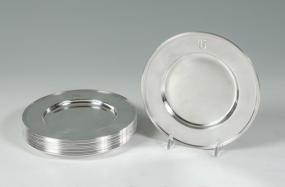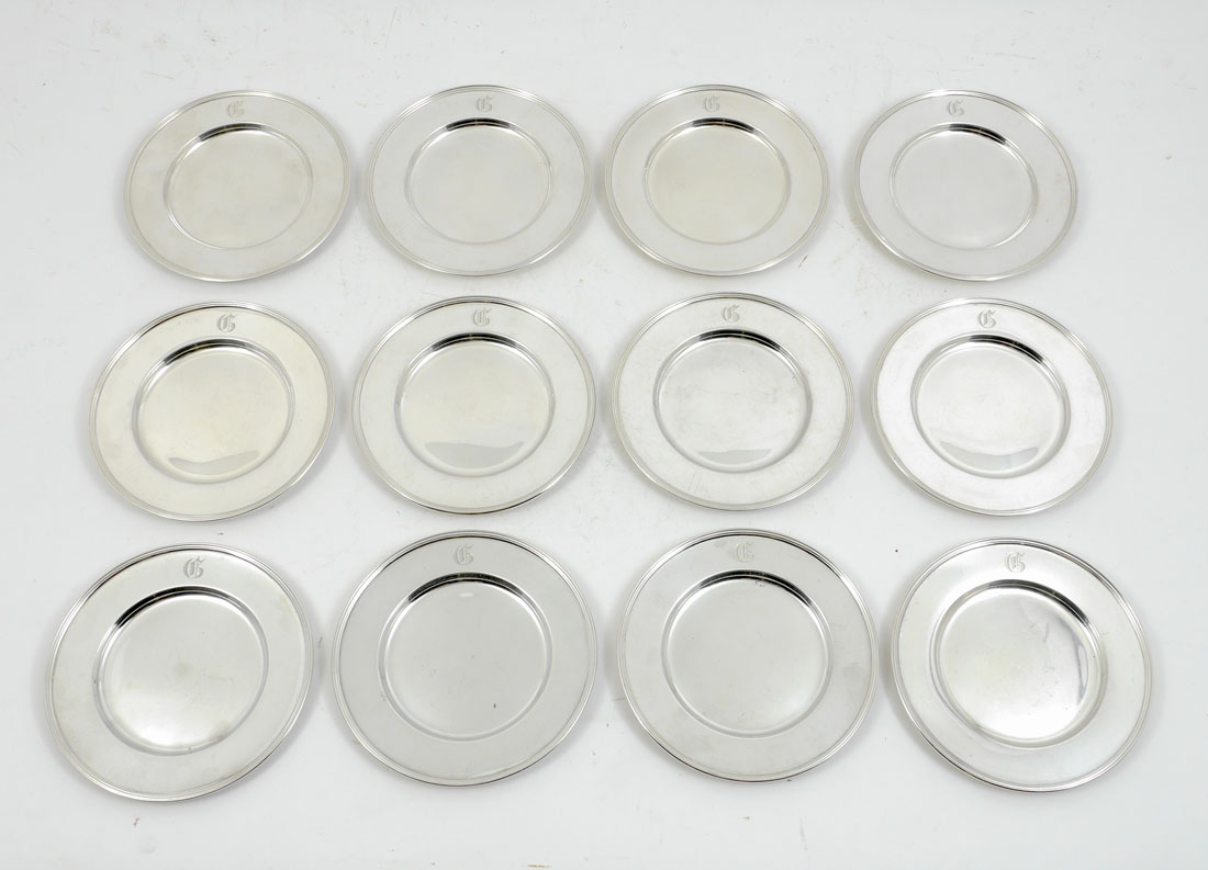 12 ALVIN STERLING SILVER BREAD PLATES: Each marked with Alvin marks, Sterling, 3110, monogrammed G, 6 1/4'' dia. Approx. 40.1 troy oz.