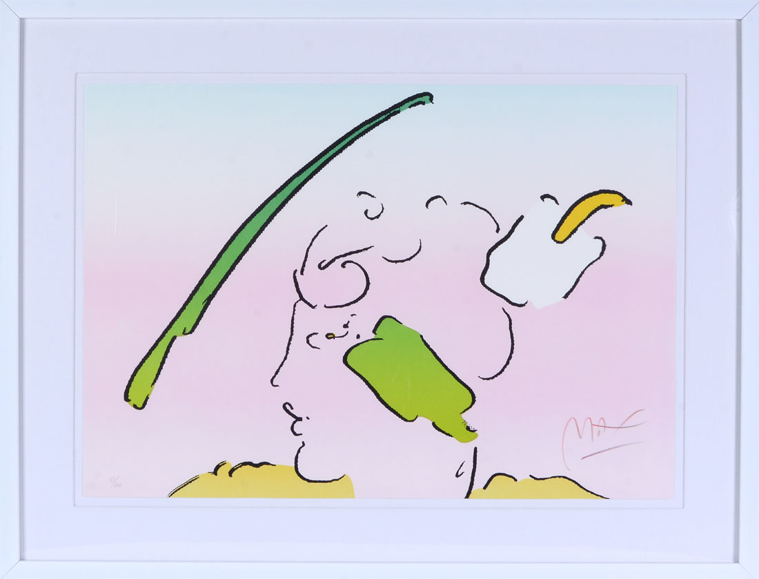 MAX, Peter, (American, 1937): ''In Horizon'', Lithograph, sight size is 21'' x 30'', framed 29.75'' x 38.5'', numbered 83/200 in pencil in the lower left, signed lower right, framed, 29.5'' x 38'', with embossed stamp ''Peter Max''.