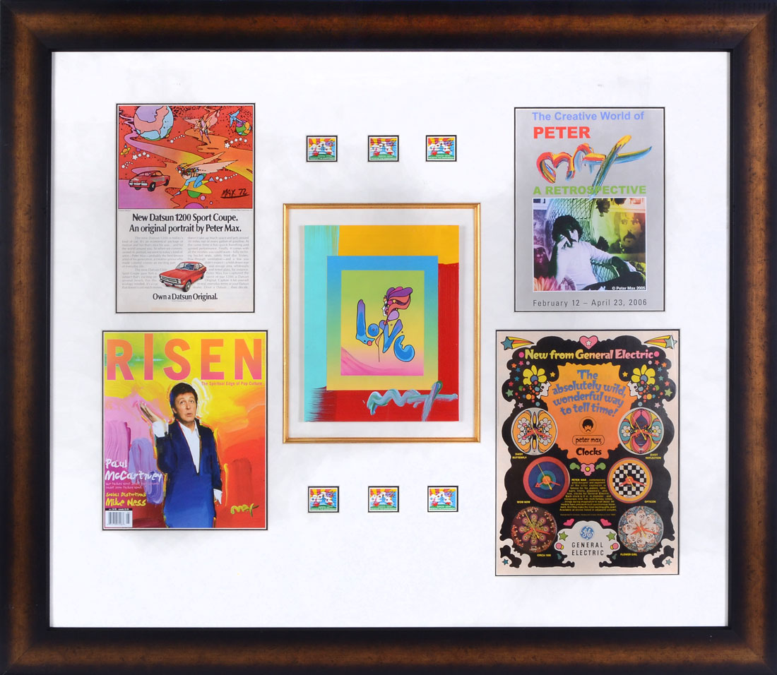 MAX, Peter, (American, 1937): ''Love on Blends'', Mixed Media, sight size is 10'' x 8'', signed in paint in the lower right, framed, 34.5'' x 40.5''.