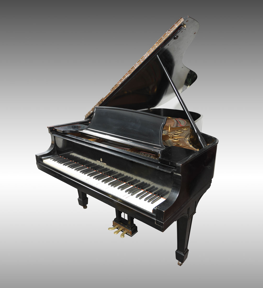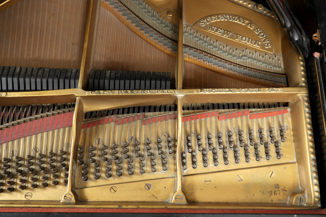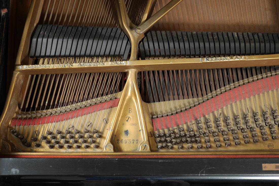 1929 STEINWAY EBONIZED MODEL B GRAND PIANO: The classic Model B piano by Steinway & Sons is often referred to as the ''the perfect piano'' by pianists. This piano made in 1929, serial number 269577, is the perfect candidate for restoration to its former glory. Overall measures 39 1/2'' h. x 56'' x 6' 11''.