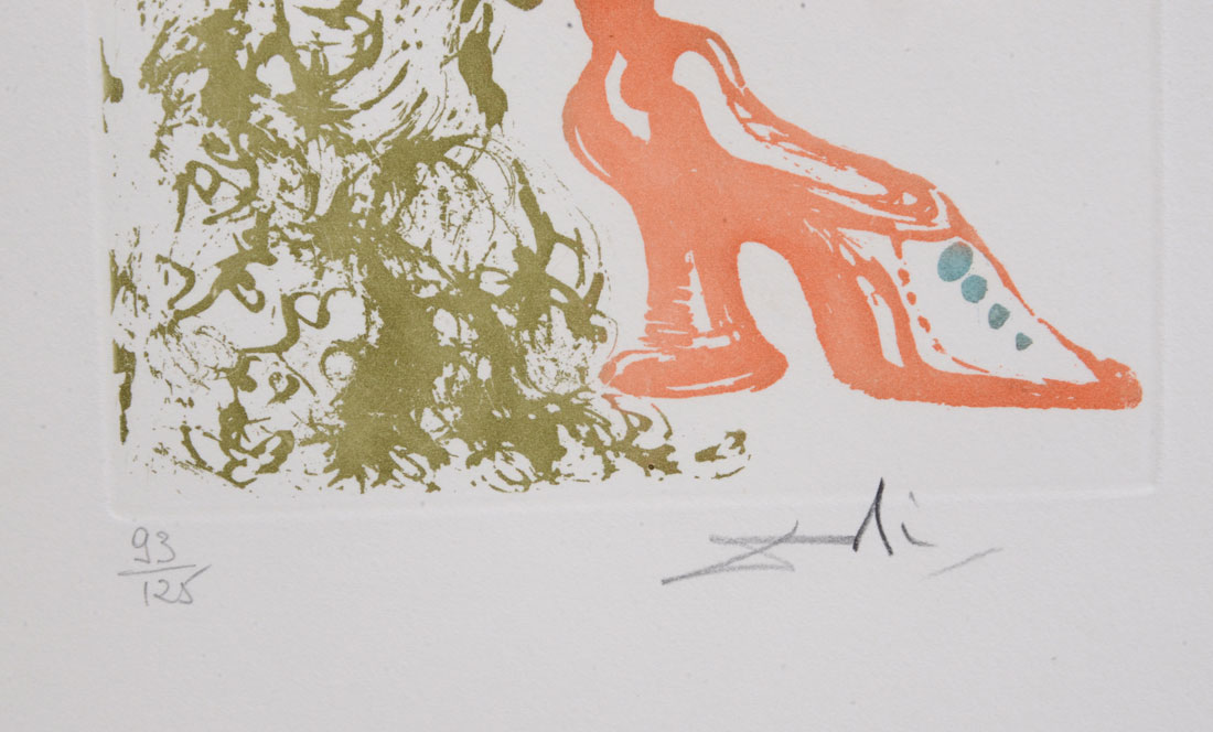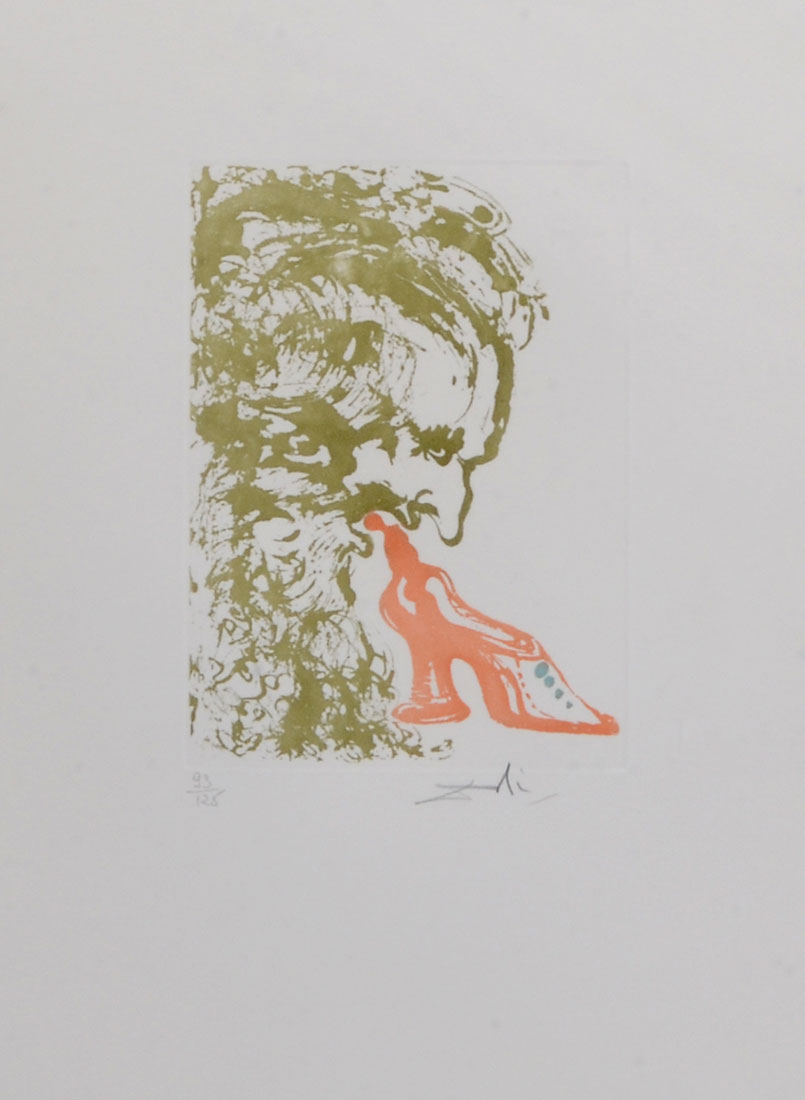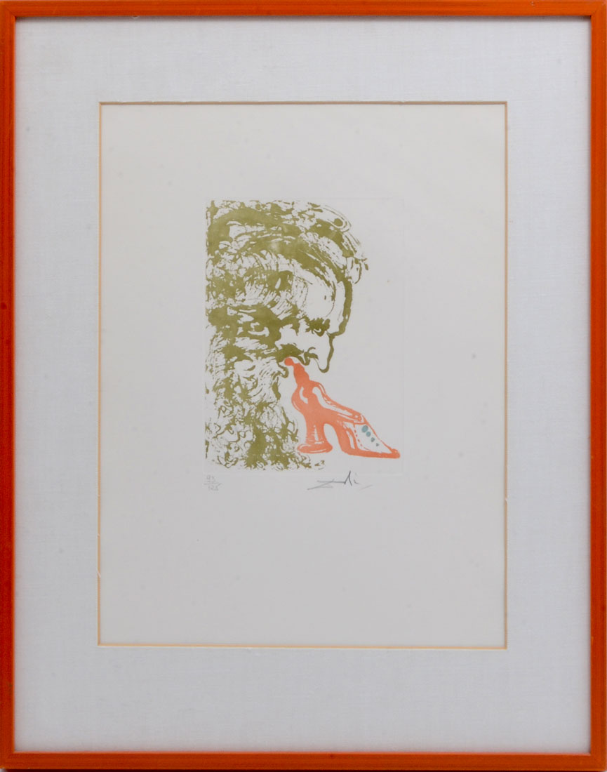 SALVADOR DALI ETCHING ''GLUTTONY'': From the 8 Mortal Sins Suite, 7.25'' x 5.5'' impression size, sight size 14.5'' x 11.5'', pencil signed lower right, numbered 93/125, framed, 20.5'' x 16.5''.