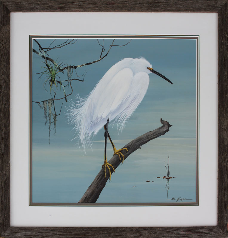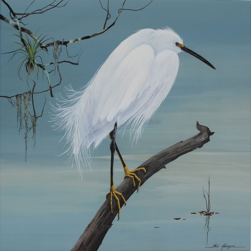 ADAMSON, Neil (American, 20th Century): ''Snowy Egret'', Watercolor and Gouache, site size is 17 1/4'' x 20 1/4'', signed lower right, custom frame is 25.5'' x 28 1/4''.