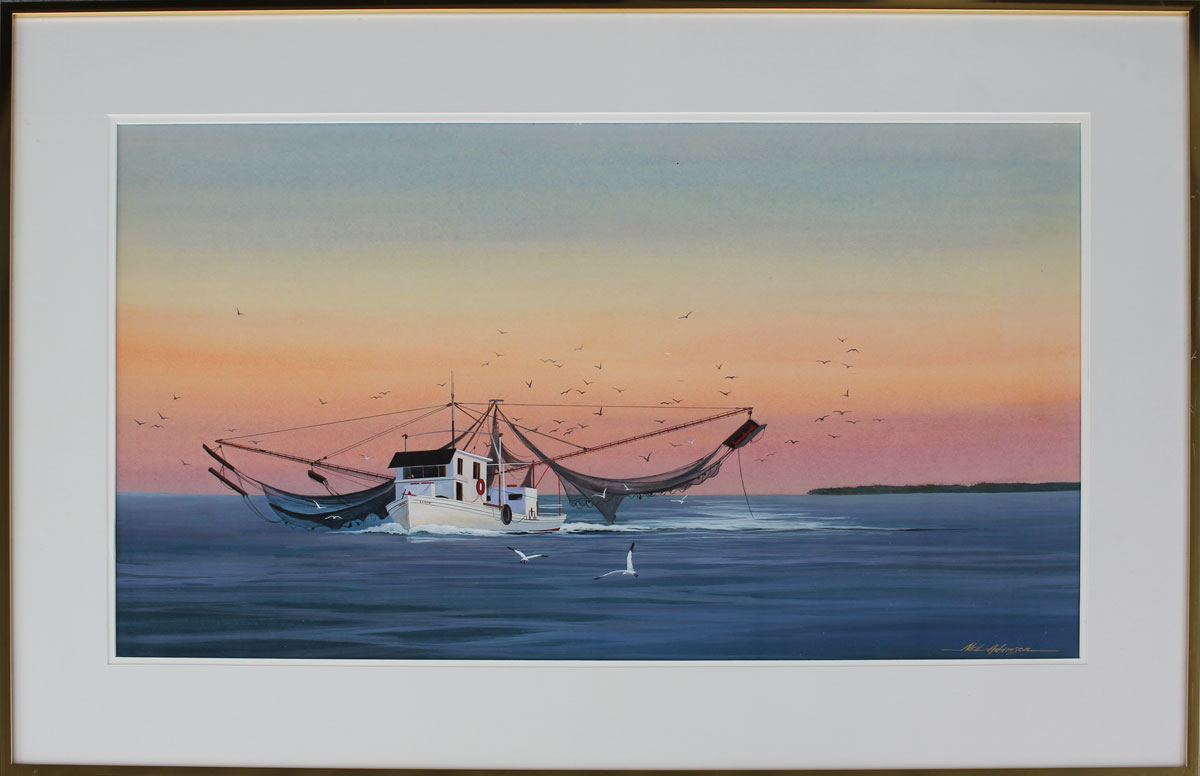 ADAMSON, Neil (American, 20th Century): ''Shrimp Trawler'', Acrylic, 18.5x 31.25'', signed lower right, titled verso, framed, 27.5'' x 39.5''.